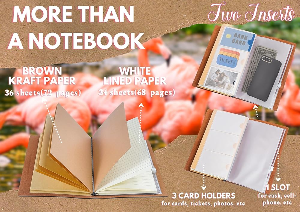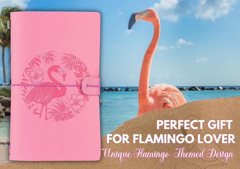 Flamingo Gifts for Women, Flamingo Journal, Flamingo Themed Vegan Leather Embossed Refillable Notebook - Gifts for Christmas and Birthday