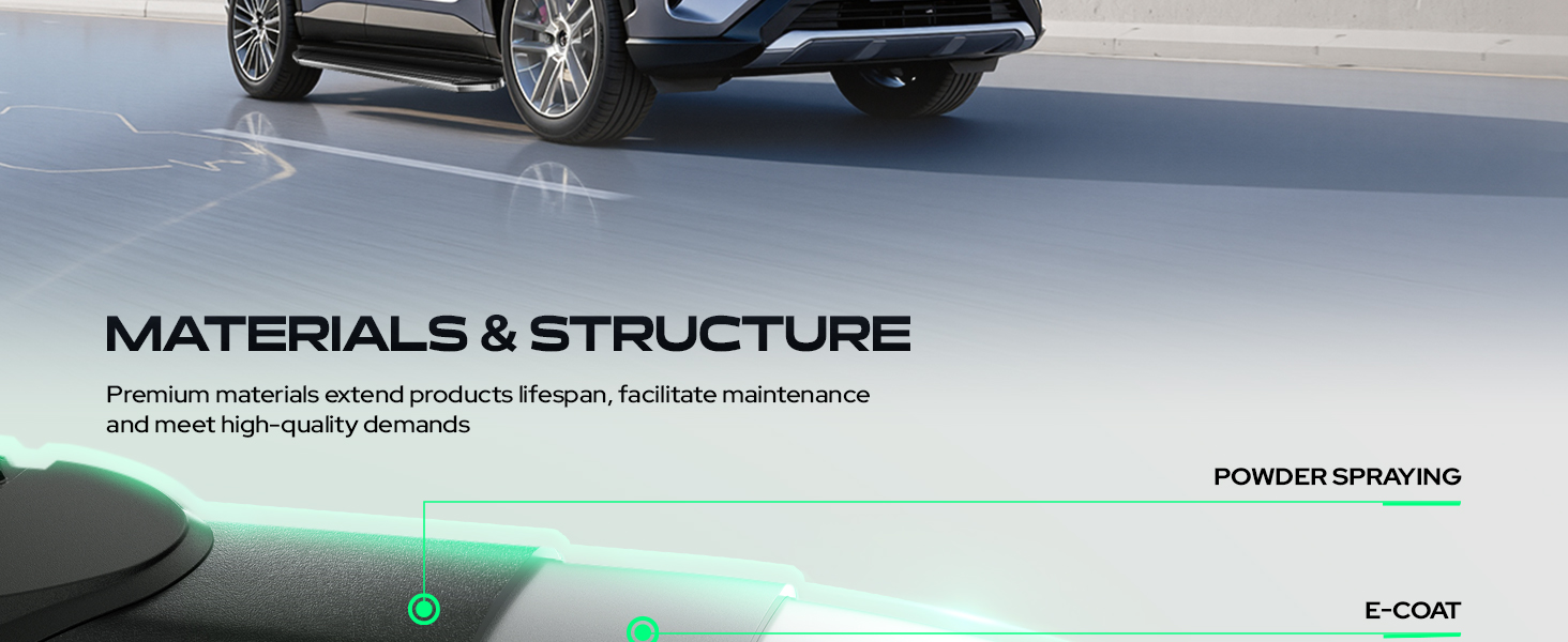 • زخرفة مميزة: تتميز الدرجات الجانبية لشاحنة Viewpoint بقاعدة مقذوفة لتصميم خفيف الوزن ولكنه متين. الزخرفة الجانبية المتطورة مصنوعة من الفولاذ المقاوم للصدأ المصقول T-304، مما يوفر لمسة مميزة ومقاومة للصدأ. أنها تعطيك الذوق الديناميكي الهوائي