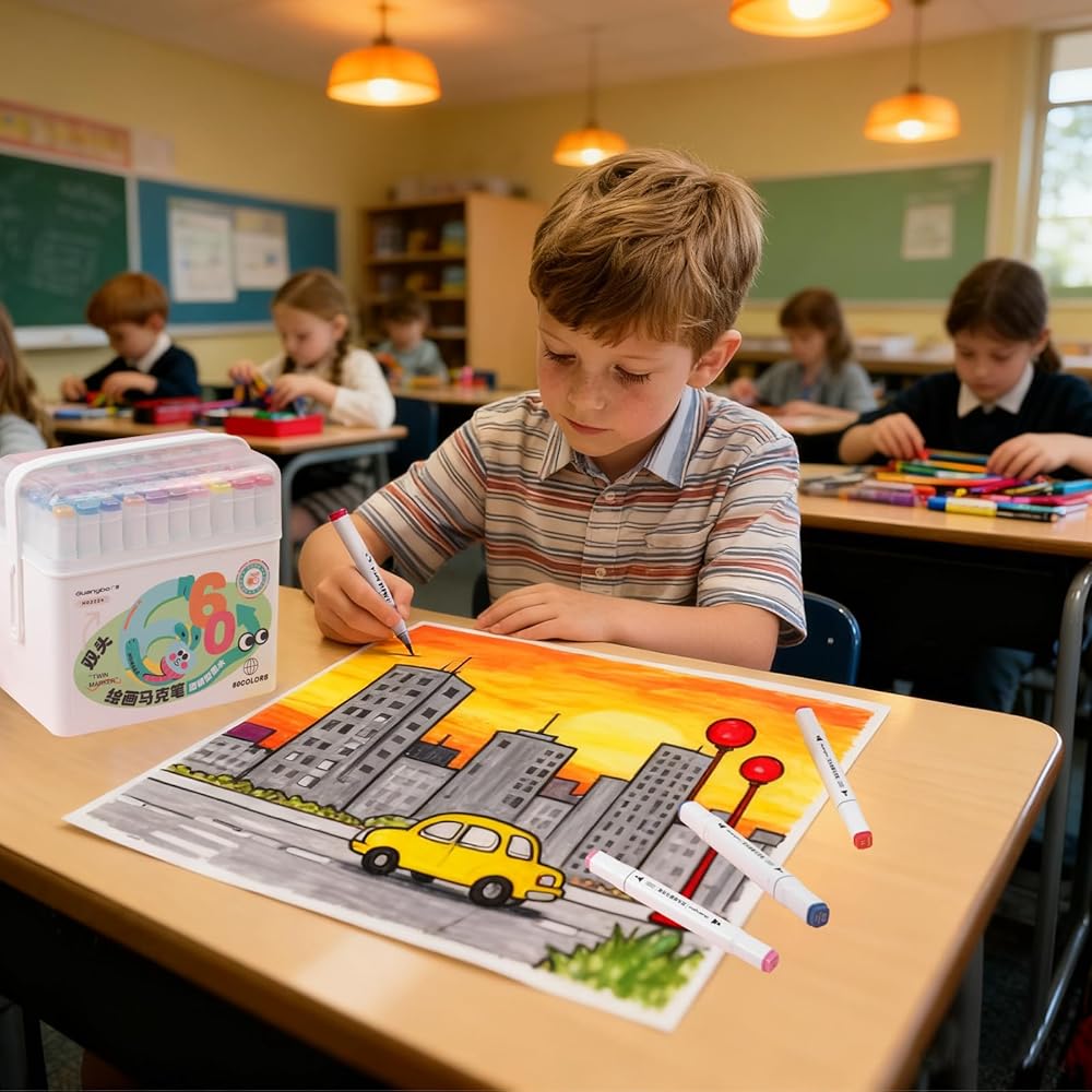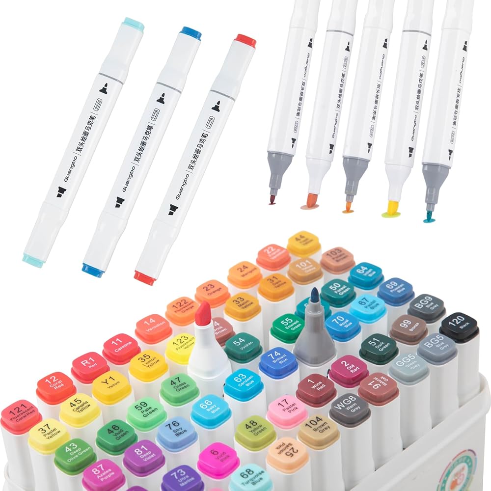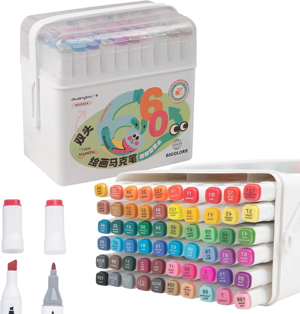 الترميز والقاعدة: تأتي مع قاعدة تحافظ على تنظيم جميع أقلامك، مثالية للسفر والتخزين، مما يجعل مشهد الرسم الخاص بك أقل فوضى. تسمح أغطية الأقلام الملونة المشفرة رقميًا بالتعرف السريع على الألوان.