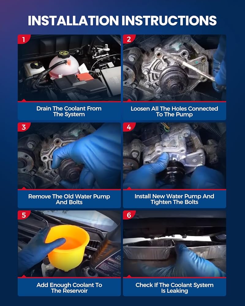 • ملاحظة: يرجى التحقق مما إذا كانت مضخة المياه متوافقة مع سيارتك قبل الشراء. خدمة ما بعد البيع: توفير خدمة ما بعد البيع لمدة عام بدون قلق. إذا كان هناك أي فشل، واسمحوا لنا أن نعرف في أي وقت