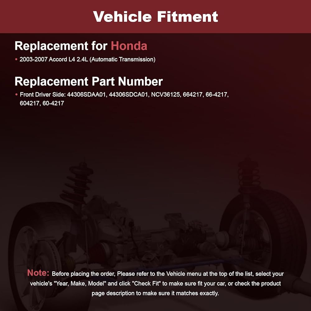 إعداد السيارة: عمود المحور لسيارة Honda Accord 2003-2007 L4 2.4L ناقل حركة أوتوماتيكي فقط