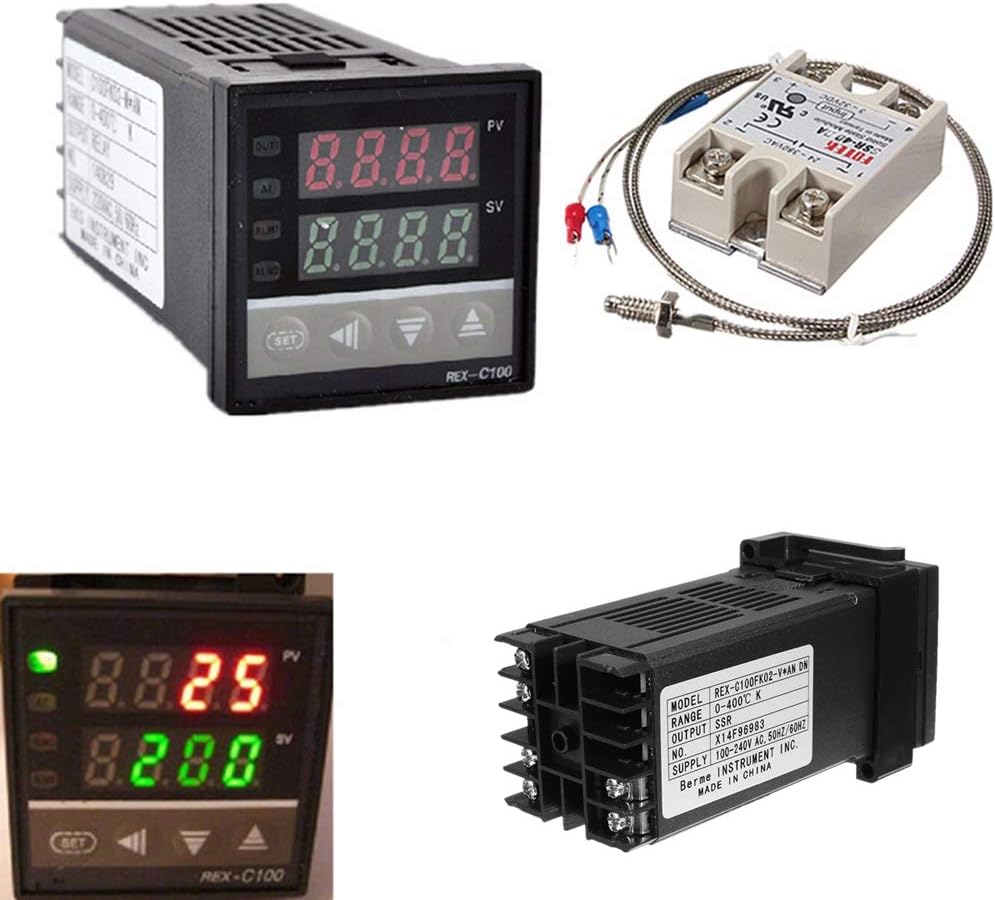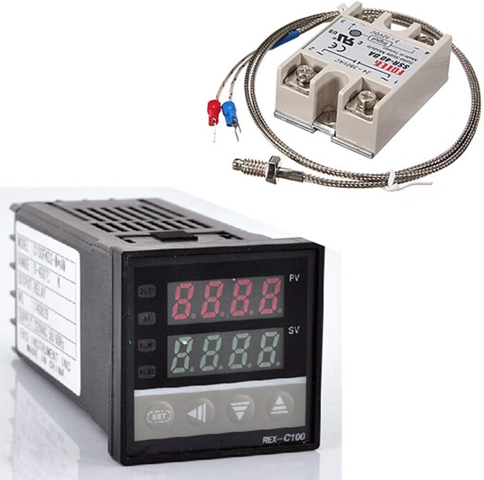 مجموعة وحدة تحكم في درجة الحرارة الرقمية LCD PID REX-C100 + K الحرارية + بحد اقصى 40 امبير SSR