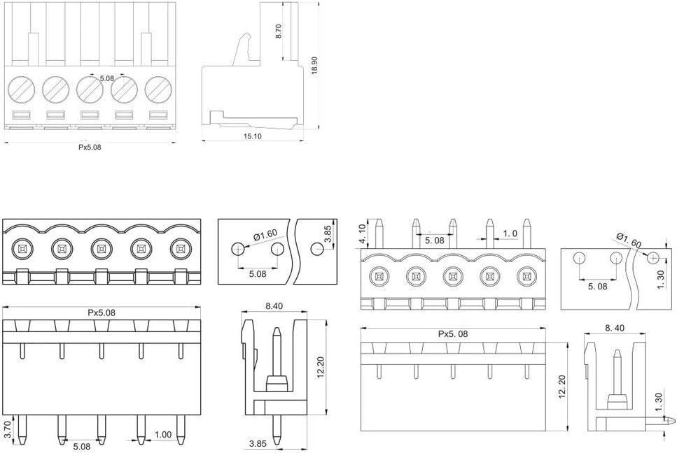 SIZE: Pin Distance : 5.08mm/0.2"; Total Size : Approx. 20 x 15 x 10mm (L*W*H) .