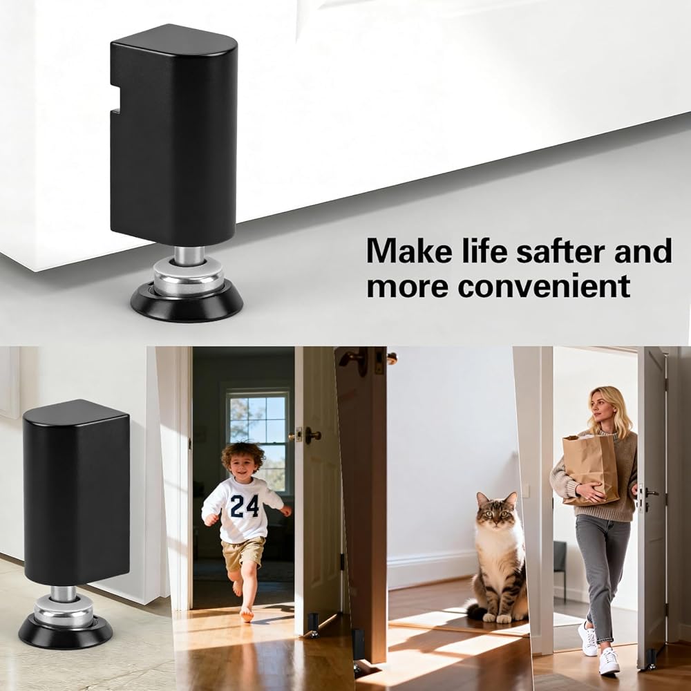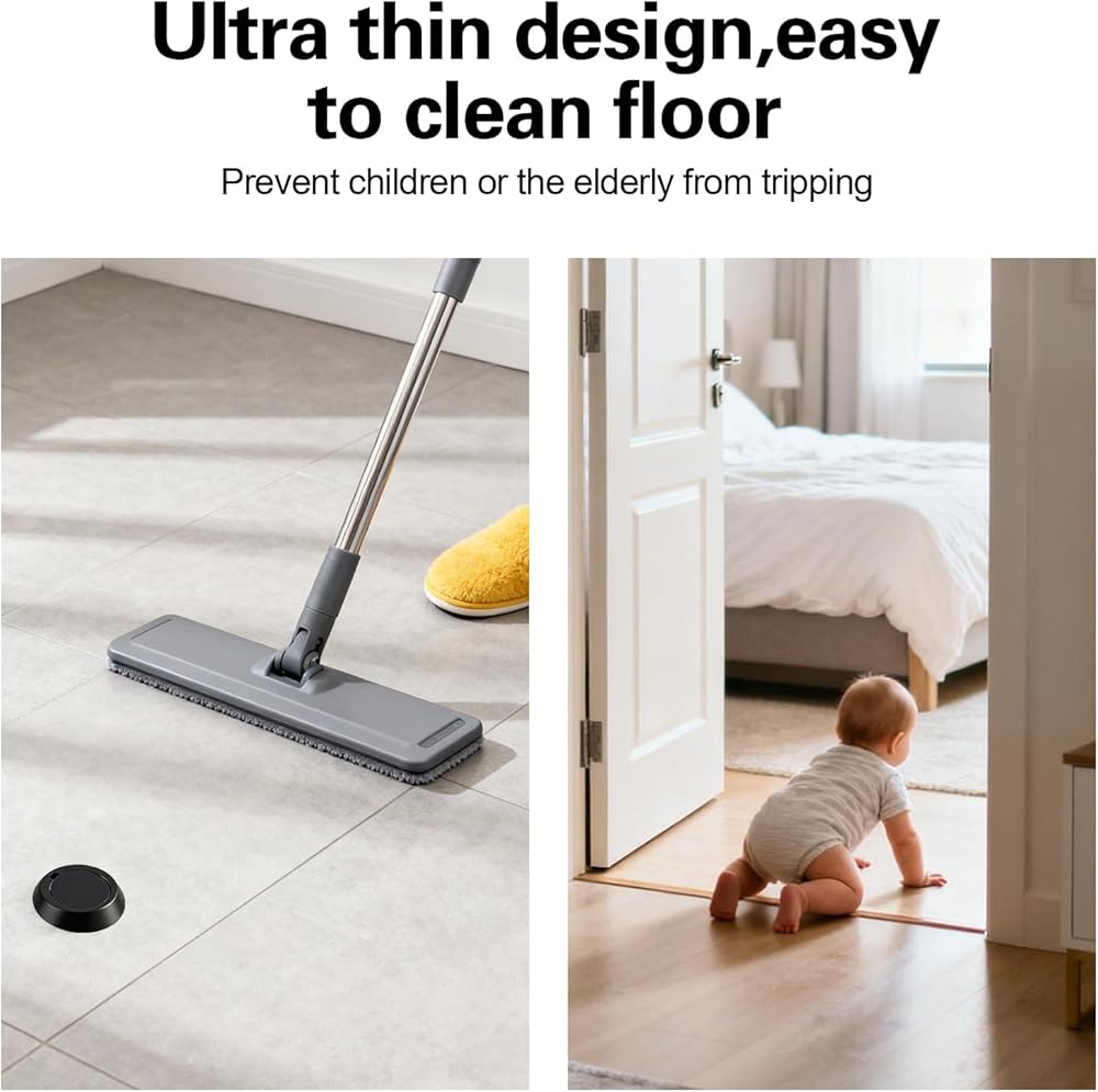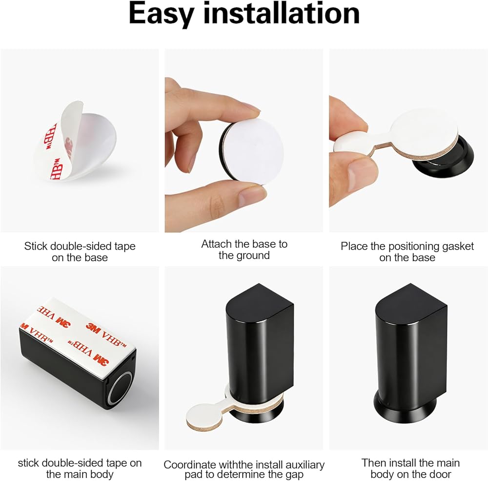تركيب سهل ومرن: يتم تركيب سدادة الباب بدون ثقب في ثوانٍ باستخدام الوسادات اللاصقة المتضمنة - لا حاجة لأي أدوات أو تلف في الحائط. توقف الباب المغناطيسي يحمل بابك بشكل آمن دون الإضرار بالأرضيات أو الإطارات. مثالي كحامل باب مغناطيسي للمنازل التي بها أطفال أو كبار السن أو حيوانات أليفة، مما يضمن الوصول السلس بدون استخدام اليدين في كل مرة.