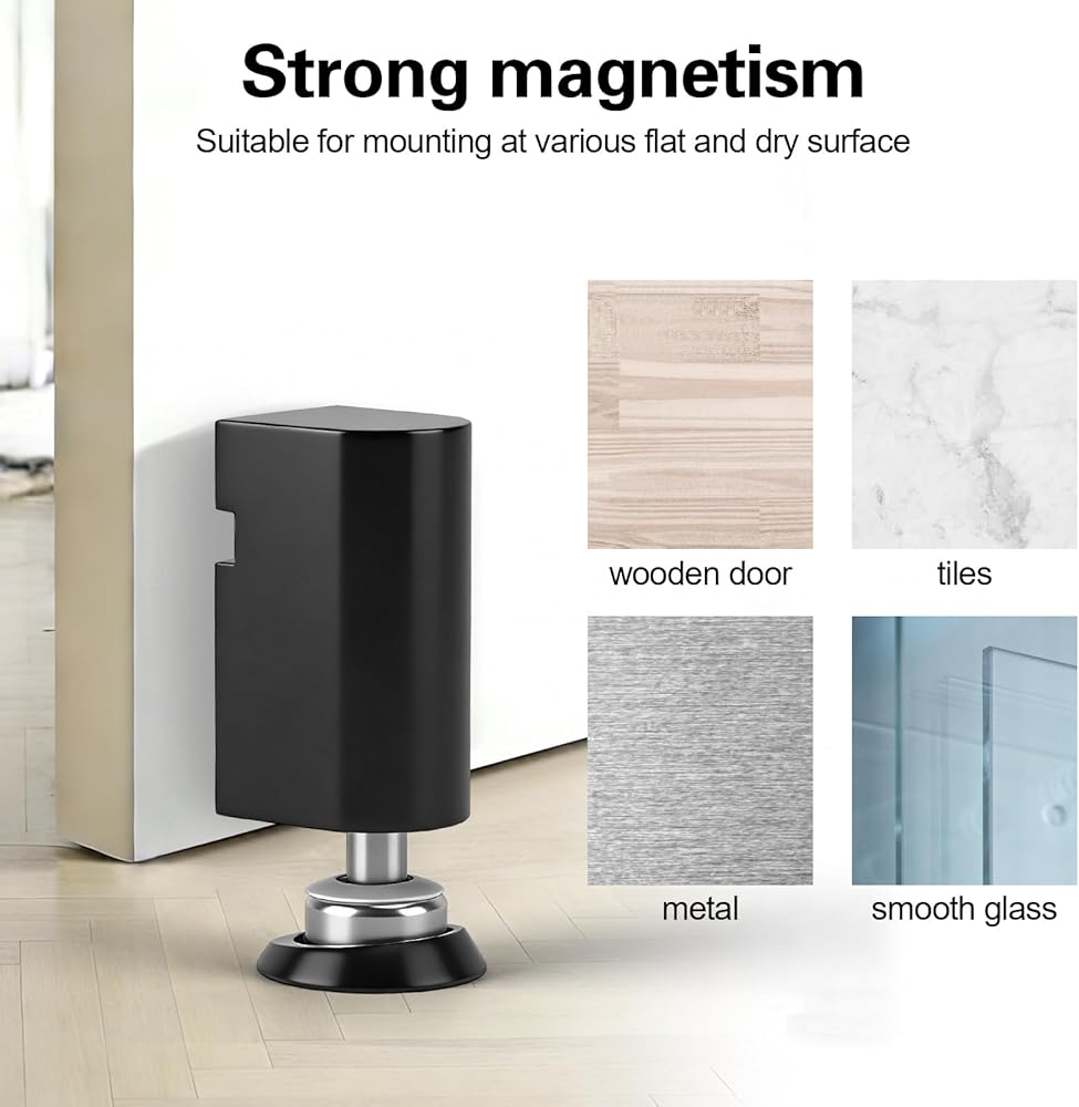 سدادة باب مغناطيسية صامتة - توقف باب من الفولاذ المقاوم للصدأ، توقف باب مغناطيسي بدون حفر ومسامير، مغناطيس باب أسود غير لامع، ارتفاع قابل للتعديل، للأبواب والجدران المعدنية والزجاج الخشبي