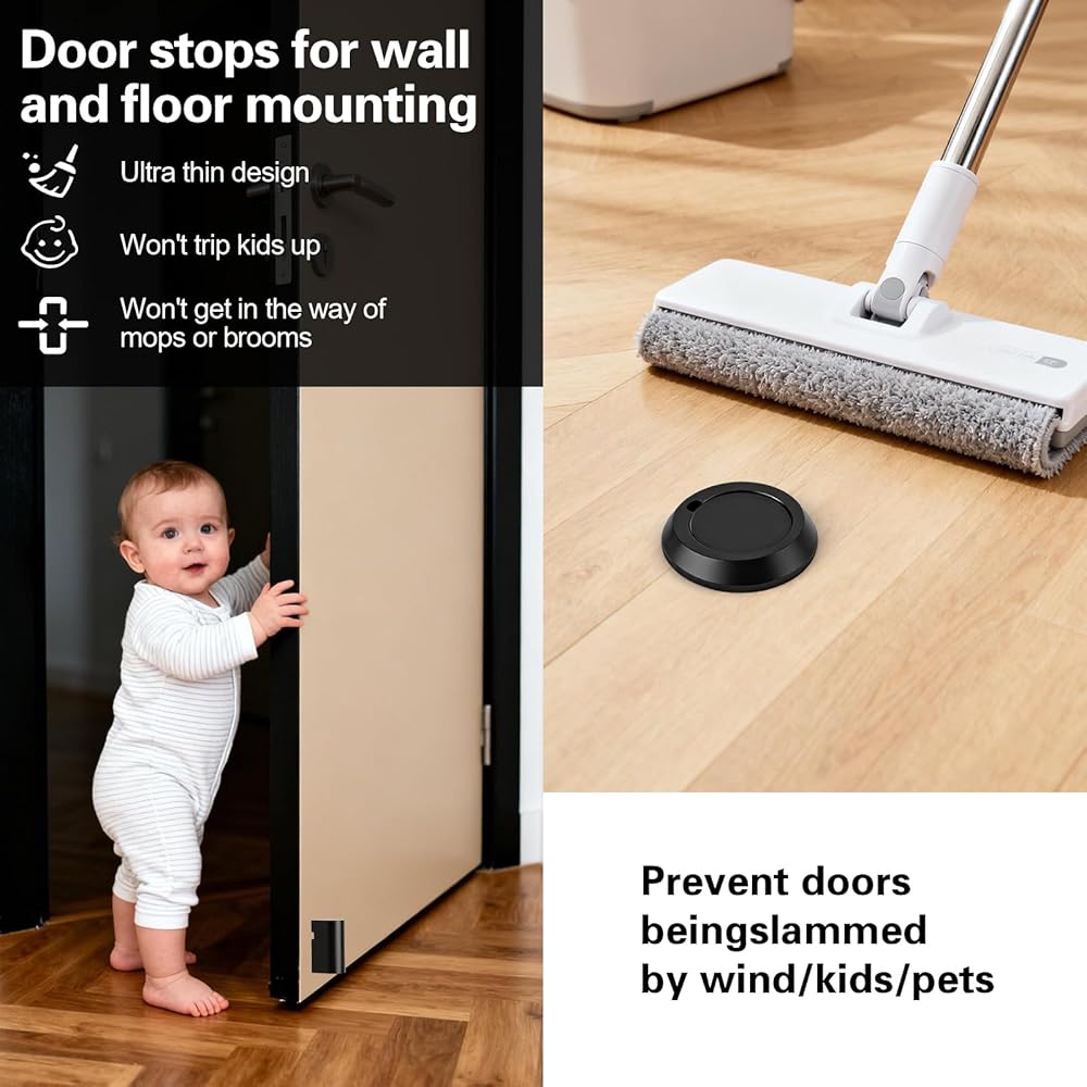 غير مرئية وضوضاء: تتميز سدادة الباب المغناطيسية فائقة النحافة (6 مم) بمغناطيس باب قوي من أجل الإمساك الصامت والآمن. يتميز حامل الباب المغناطيسي بأنه مقاوم للغبار، ويمنع الانزلاق، ويقلل من مخاطر الرحلات للأطفال وكبار السن، ويبقي الأبواب مفتوحة لتدفق الهواء - مما يحرر يديك عند حمل البقالة أو الغسيل أو أكثر.