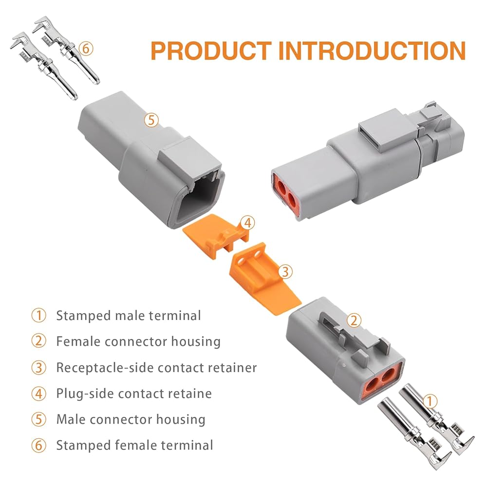 • Waterproof Design: These DT connectors feature an IP67 waterproof rating, ensuring reliable performance in rain, dust, and mud. Ideal for automotive, marine, and off-road applications.