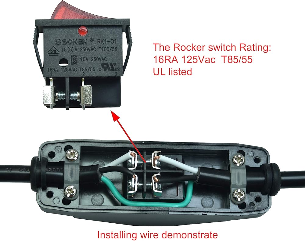 تيار كبير، تصنيف المفتاح: 16 أمبير 125 فولت/250 فولت تيار متردد، العمر الكهربائي: 10,000 مرة.