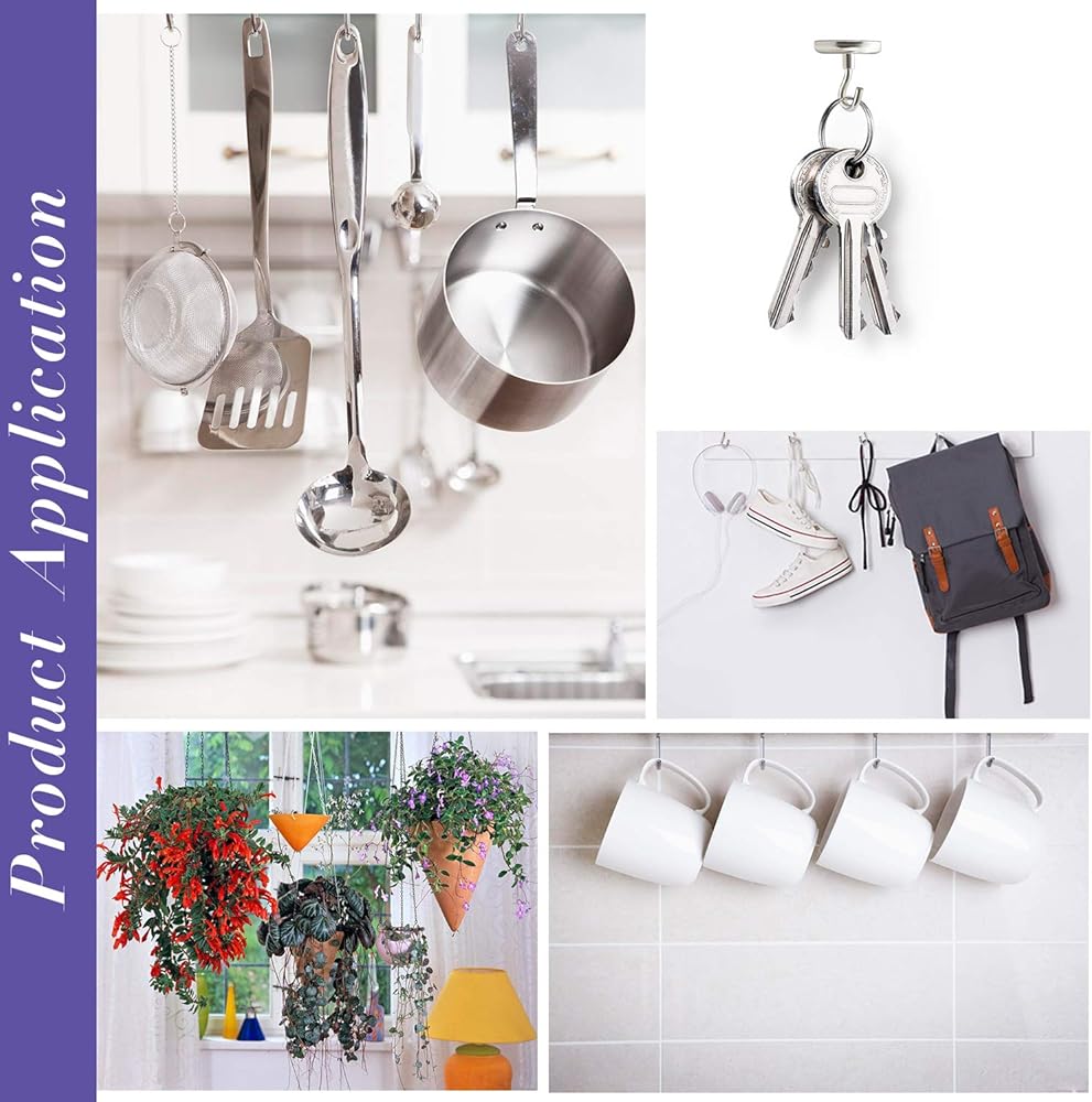 متعددة الاستخدامات: الخطاف صغير الحجم وسهل الحمل. يمكن استخدامها لتنظيم مساحتك الخاصة في أي وقت وفي أي مكان توجد فيه الحديد أو الفولاذ.