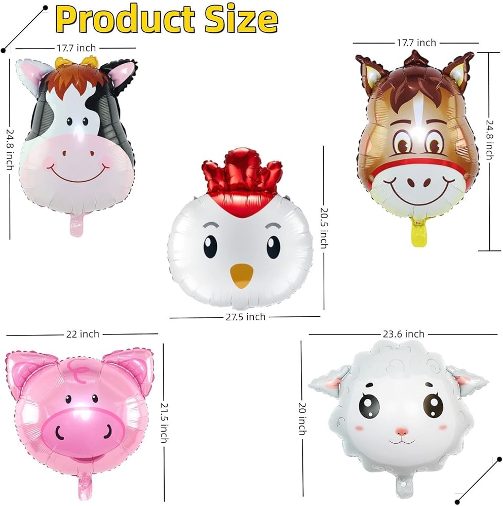 الحجم: بالون الخنزير (22 × 21.5 بوصة). بالون البقرة (24.8 × 17.7 بوصة). بالون الحمار (24.8 × 17.7 بوصة). بالون خروف (23.6 × 20 بوصة). بالون الدجاج (27.5 × 20.5 بوصة). مثالية لحفلات أعياد الميلاد وحفلات استقبال الأطفال وغيرها من الاحتفالات ذات موضوعات حيوانات المزرعة.