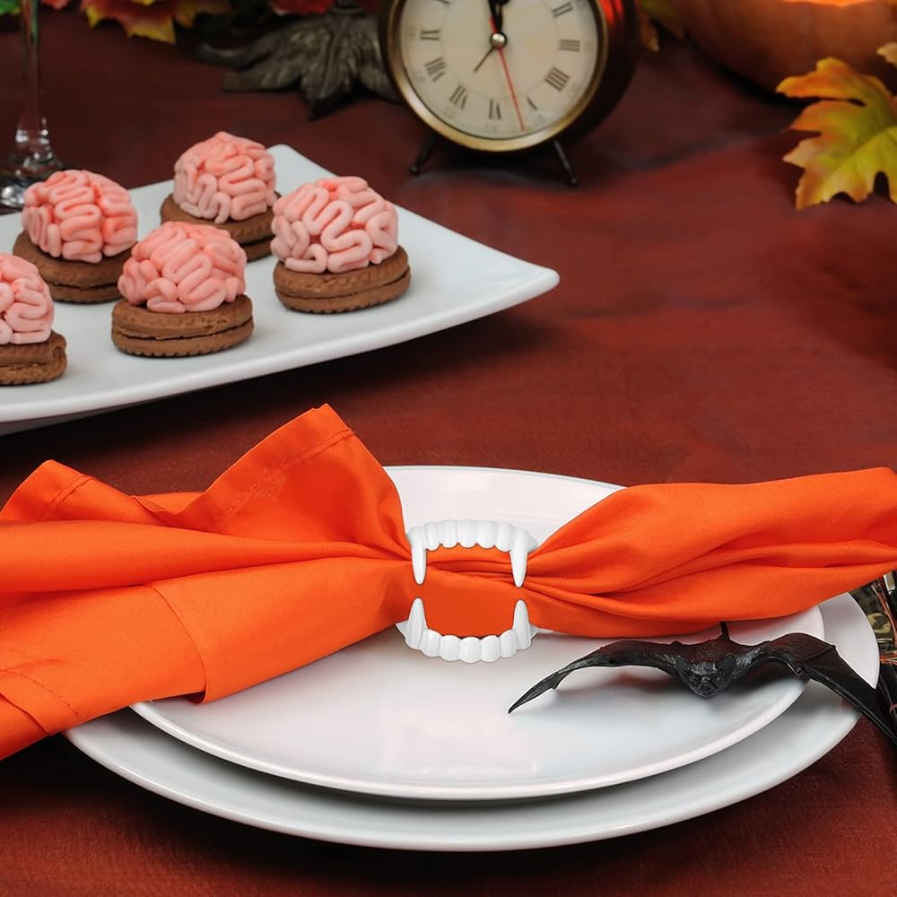 • The package includes: you will receive 6 pieces of Halloween vampire teeth napkin rings, each Halloween napkin ring measures approx. 2.2 x 1.8 x 1.6 inch / 5.6 x 4.6 x 4.2 cm, which is suitable for most napkins, keeping your napkin in good shape without scratching your napkin, adequate amount and suitable dimension to meet your decoration needs