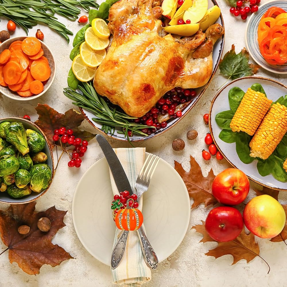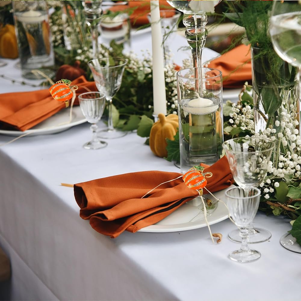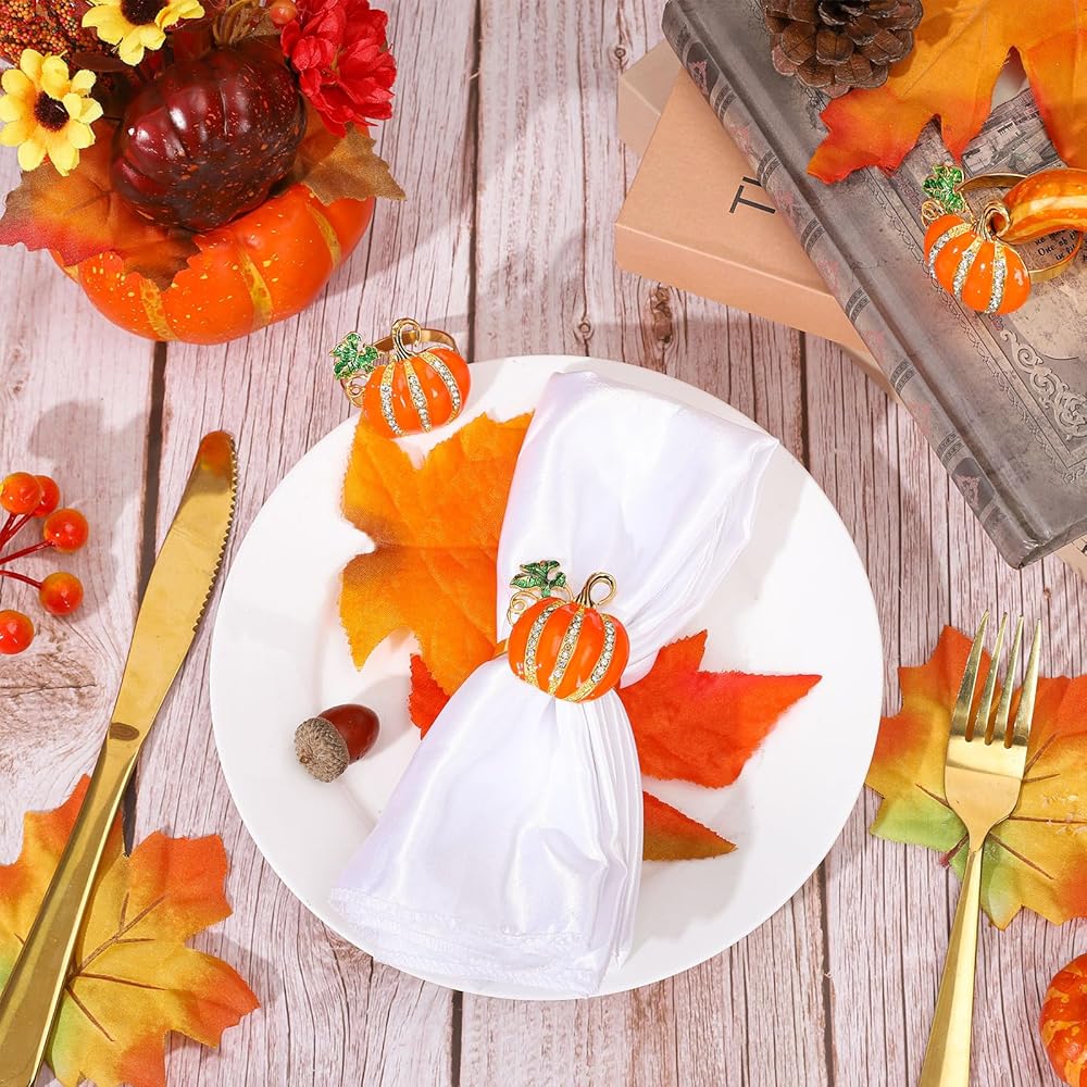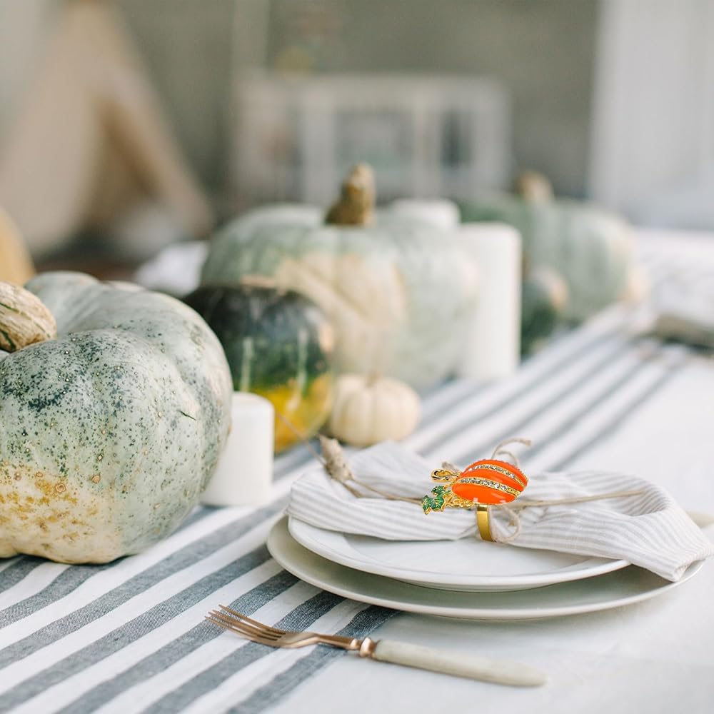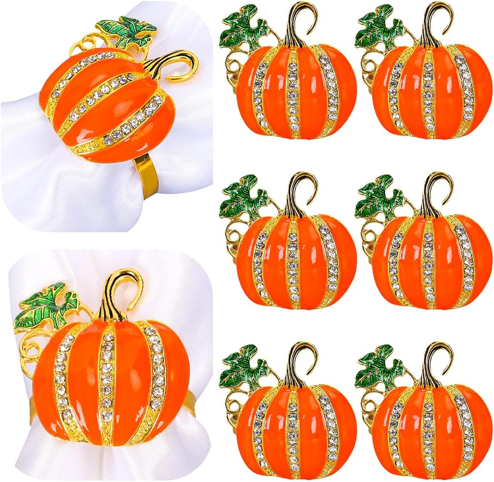 والين 6 قطع من حامل مناديل اليقطين الخريفي، خواتم مناديل عيد الشكر، خواتم معدنية لخريف الخريف، اليقطين، مشبك مناديل اليقطين مع حجر الراين، خواتم طاولة العشاء للحفلات والتجمعات العائلية وديكور طاولة