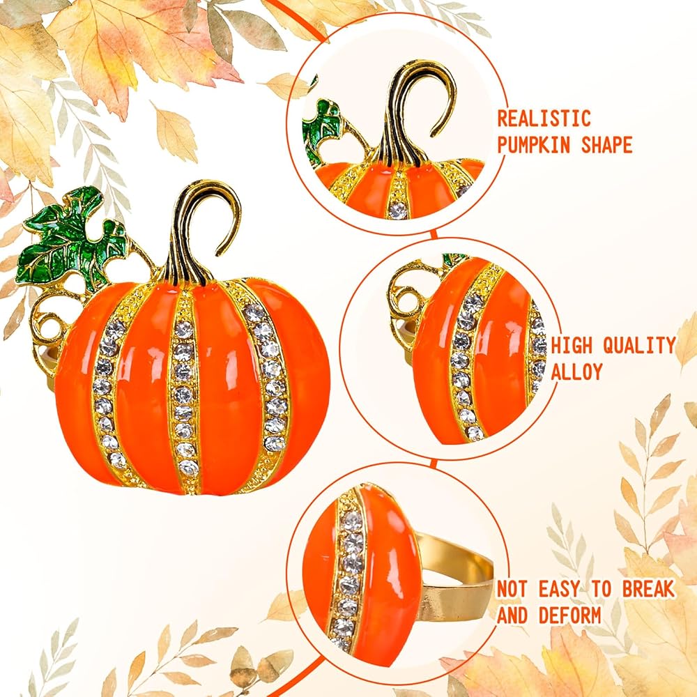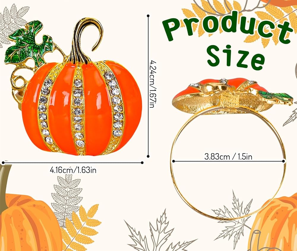 • ما ستحصل عليه - 6 قطع من خواتم مناديل اليقطين متضمنة في المجموعة، وهي مزينة بأحجار الراين، رقيقة للغاية وكافية لتلبية احتياجاتك اليومية والحفلات.