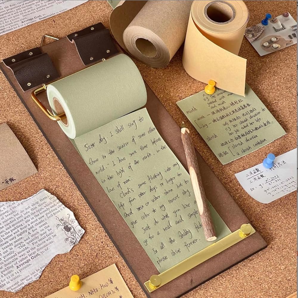 Bring vintage charm and modern functionality together with our Retro Wall Mounted Memo Board with Tearable Paper Roll. Designed for both practical use and stylish decoration, this memo board is perfect for jotting down notes, displaying menus, or leaving messages for family and friends. Crafted from durable wood fiber board with a sturdy metal clip, it holds the paper roll firmly in place while allowing smooth tearing for a clean edge every time. Each set includes one paper roll, available in multiple colors to match your home, office, café, or restaurant décor. Whether you use it in the kitchen for shopping lists, in the office for daily reminders, or in a coffee shop as a unique menu display, this memo board adds a rustic yet elegant touch to any space. Refill paper rolls are available in 1 Pack or 2 Pack options, so you'll never run out of space for your notes. Choose from a variety of colors including white, khaki gray, dark green, and natural kraft to fit your style.