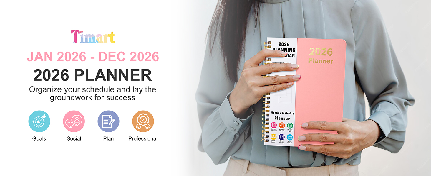 مخطط Timart 2026، مخطط أسبوعي وشهري، يناير 2026 - ديسمبر 2026، كتاب جدول أعمال، غلاف فني 2026 كتاب مخطط التقويم مع علامات التبويب، جيب داخلي للنساء والرجال، مثالي للوازم المنزلية المدرسية المكتبية، A5 (6.3 بوصة × 8.5 بوصة)-أسود