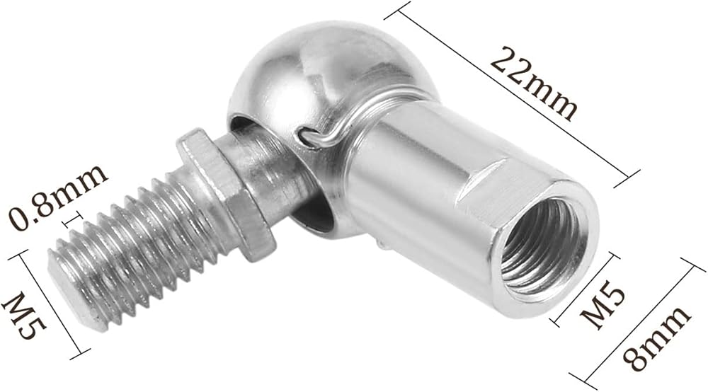 1- PACKAGE CONTENTS - 4pcs of M5 thread angled ball socket joint left hand female and right hand male, 0.8mm Pitch.
