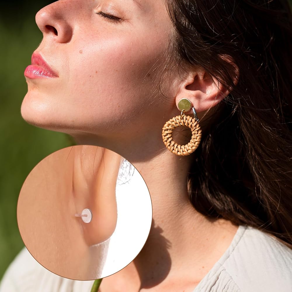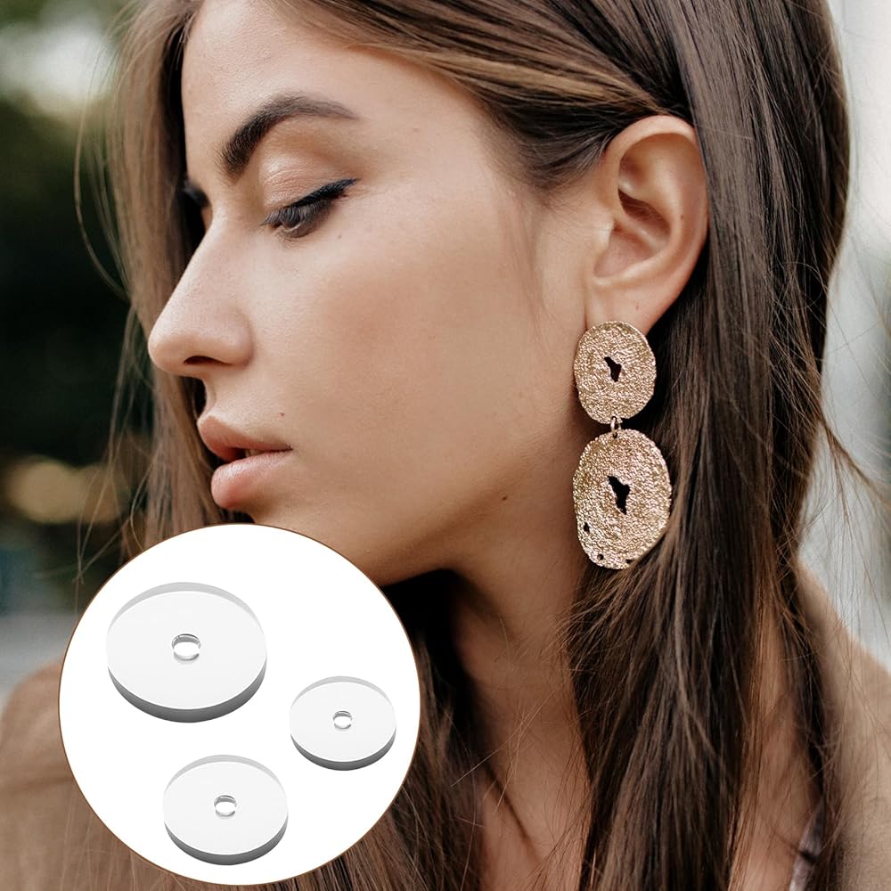 Easy to Wear: Simply place the disc between your earlobe and earring back for a secure and comfortable fit. Silicon earring backs helps keep the earring in place without stretching the piercing, providing a practical and comfortable solution for all-day wear.
