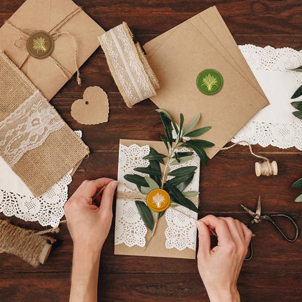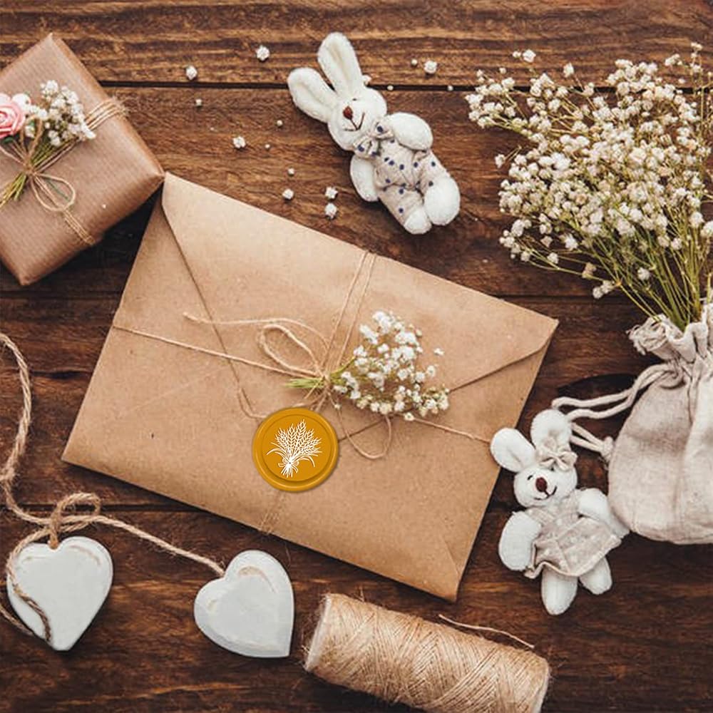 ختم شمع 30 مم: تتضمن العبوة قطعة واحدة 3 سم/1.18 بوصة ختم شمع القمح ورأس ختم نحاسي وقطعة واحدة مقبض خشبي. (لا يشمل الشمع)