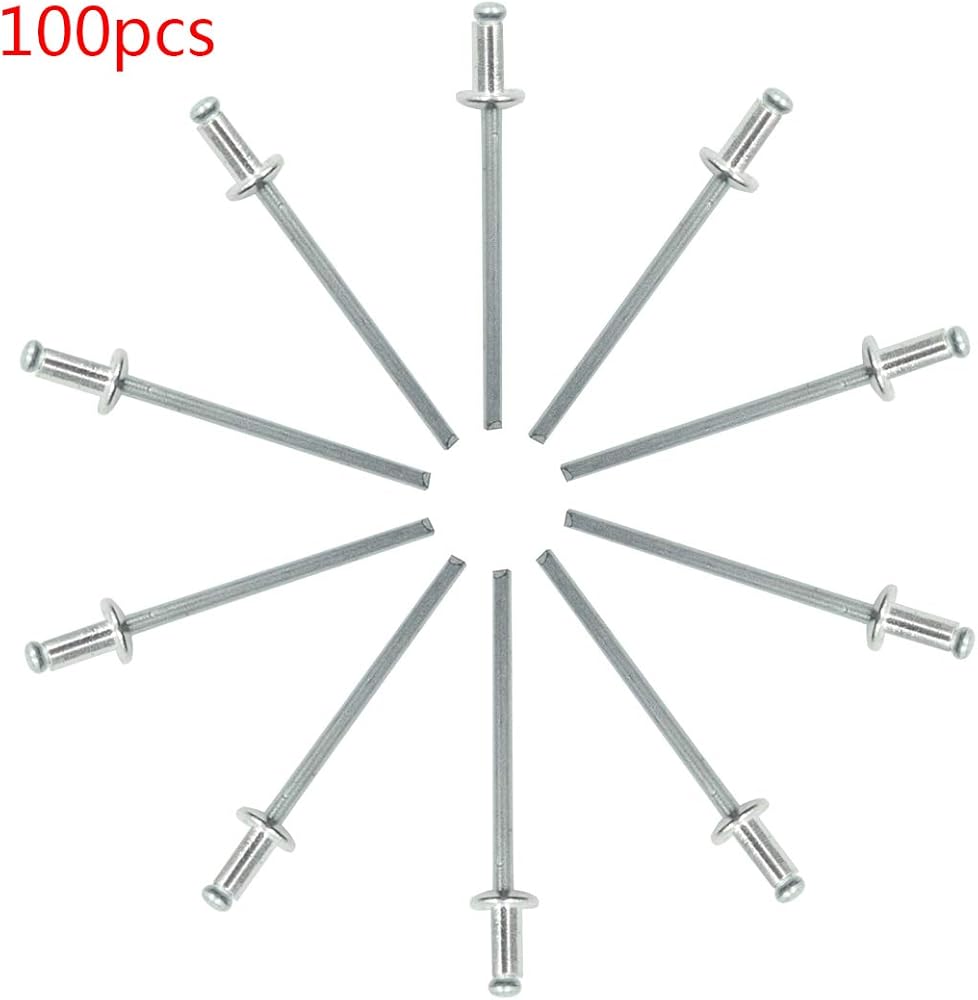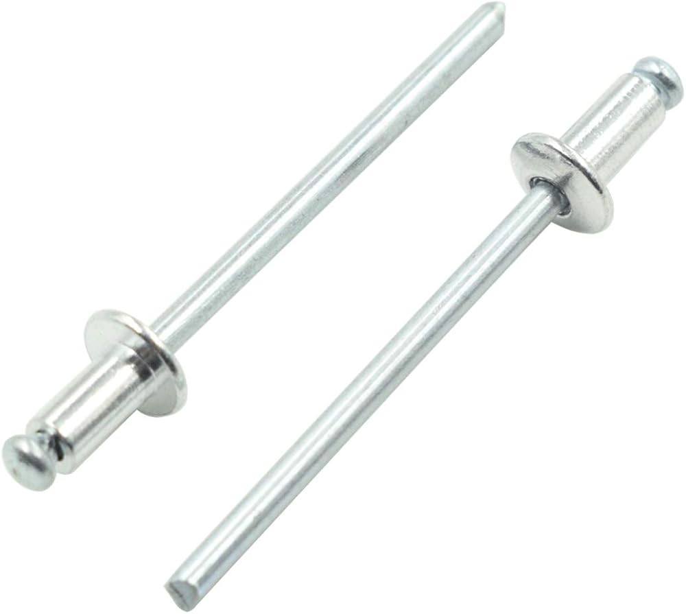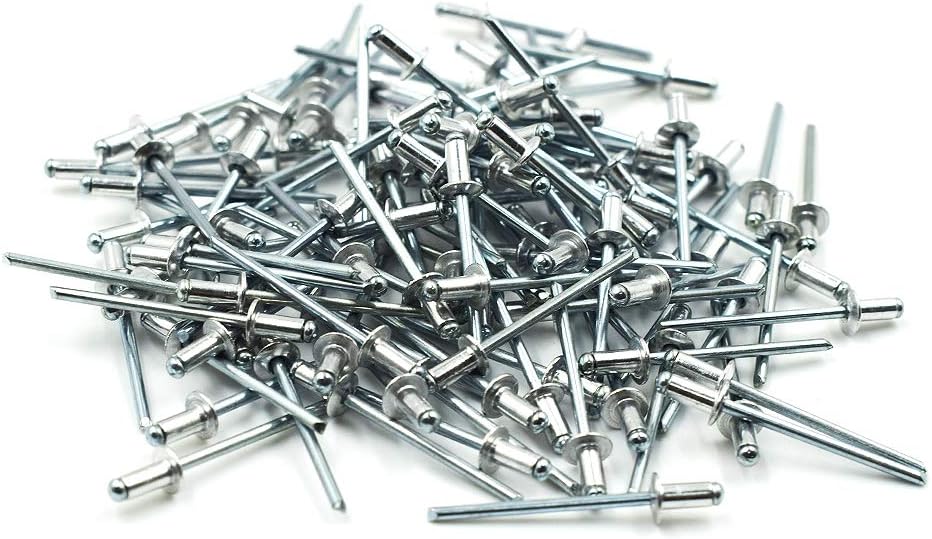 Rivet Head Size: Diameter - 1/8 inch (3.2mm), Length - 1/4 inch (6.4mm); Open end blind rivets are tubular rivets with a mandrel through the center.