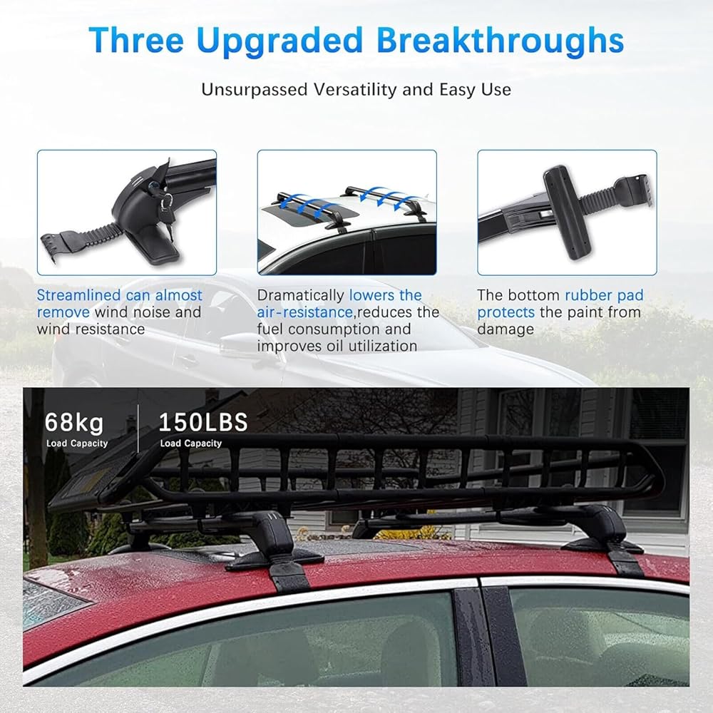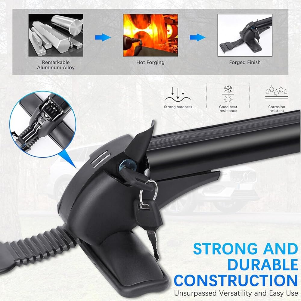 • Adjustable Roof Racks with Locks.The lock and key allow the roof rack to have an anti-theft function, increase the safety.Great solution if you have oversized items that you need to transport like: kayaks, canoes, luggage, snowboards, skis, bikes, fishing poles and more.