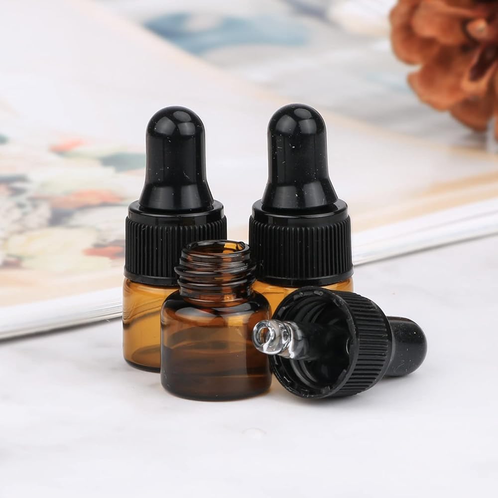 زجاجات قطارة زجاجية من العنبر من Wresty 30 قطعة صغيرة 1 مل 2 مل 3 مل زجاجات قطارة للزيوت العطرية قابلة لإعادة الملء وعطور مستحضرات التجميل وزجاجات قطارة زجاجية حاوية قارورة (1 مل)