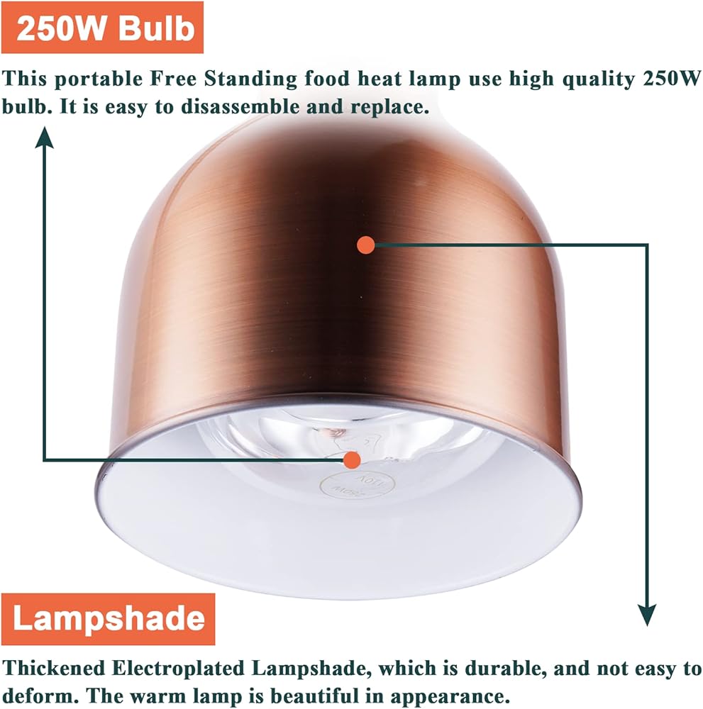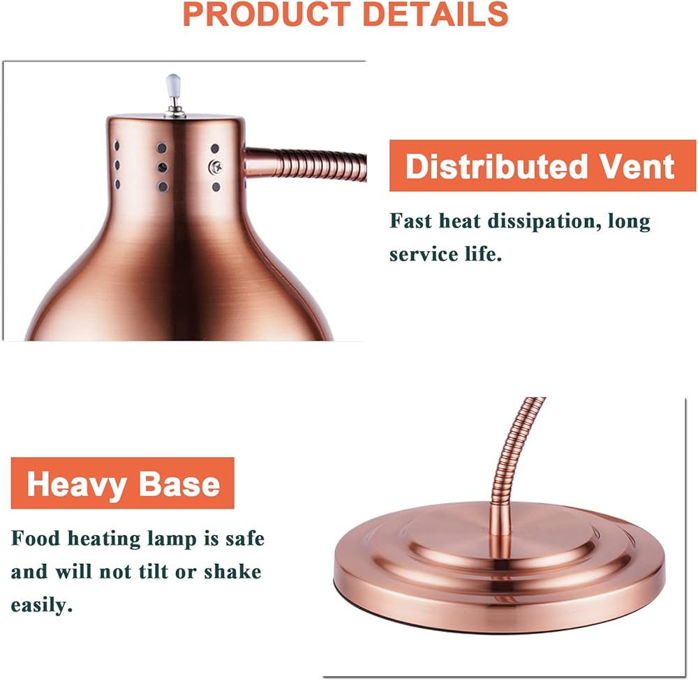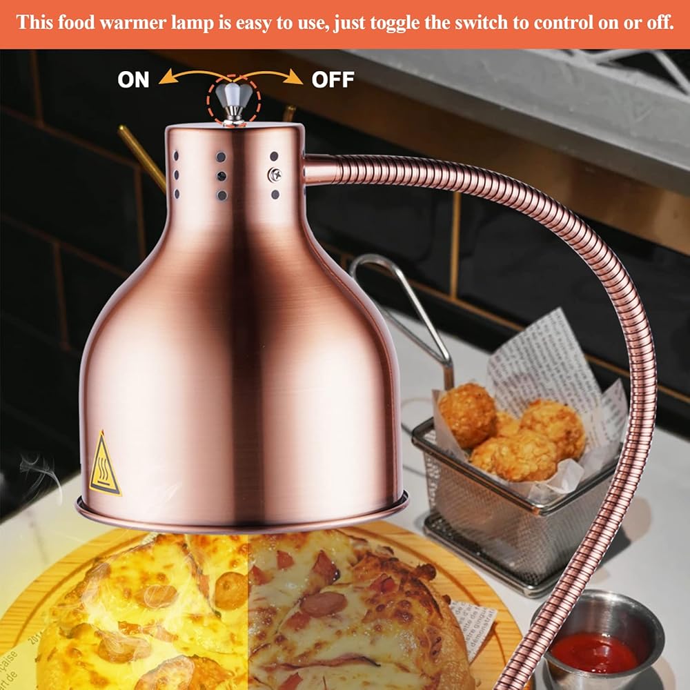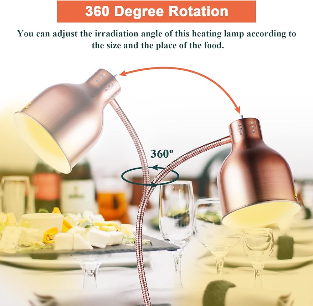 【غطاء مصباح مقاوم للحرارة】يبلغ قطر غطاء المصباح لمصباح تسخين الطعام 29 سم، ونطاق الإشعاع 44 سم. متين ومقاوم لدرجات الحرارة العالية.