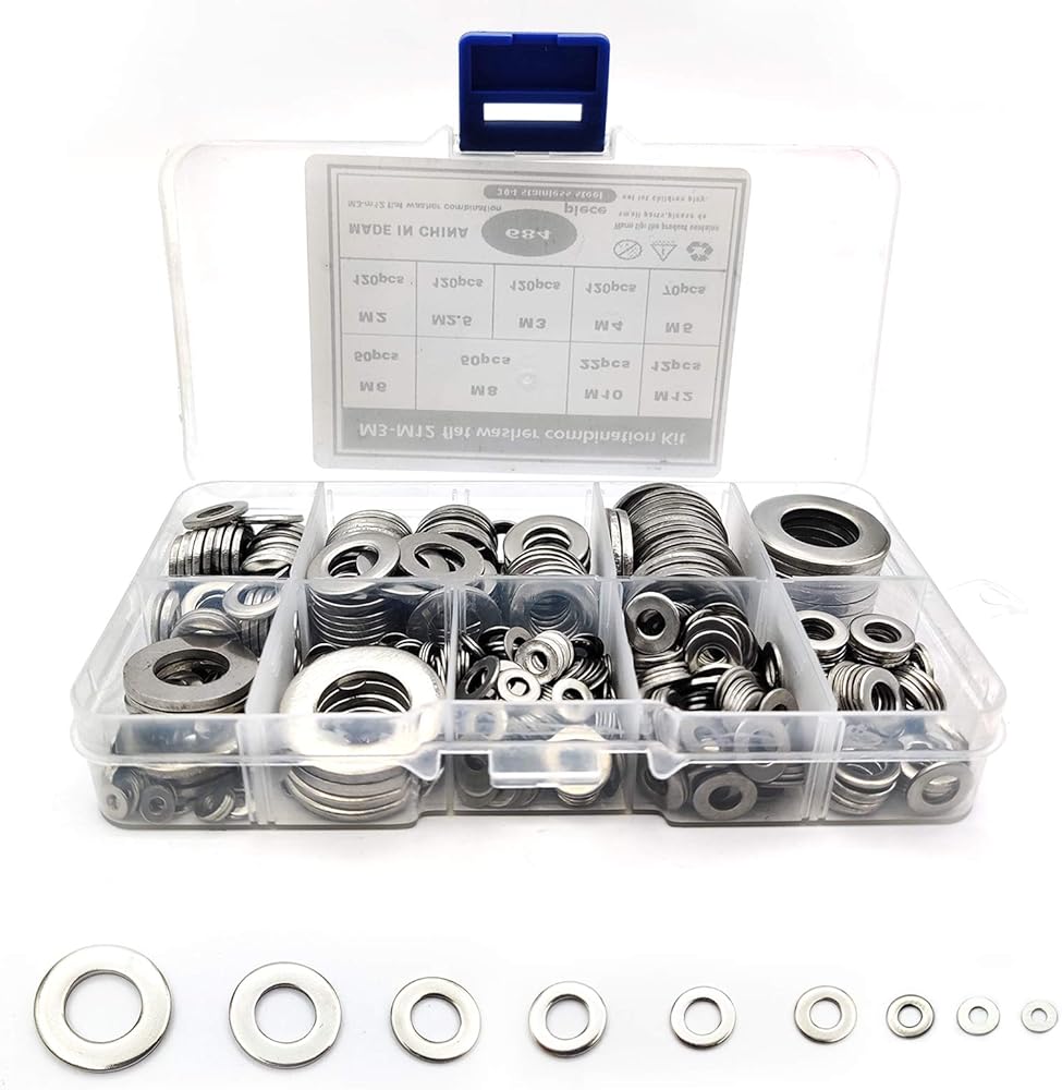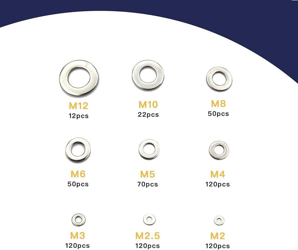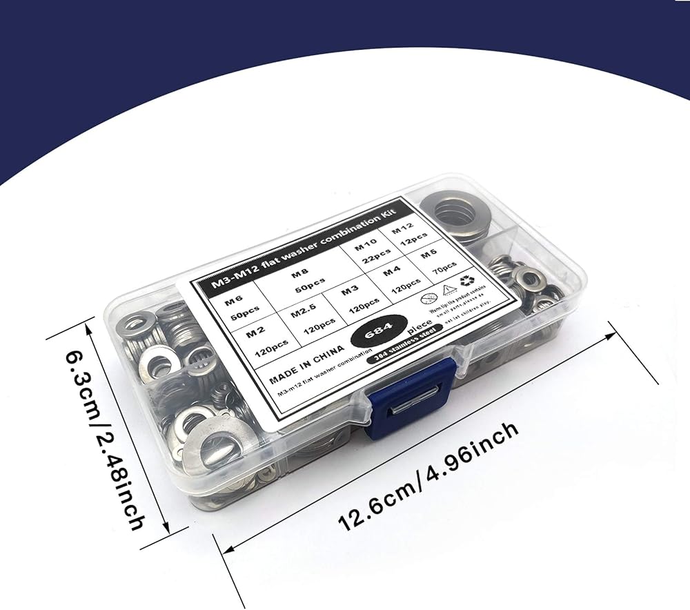 مجموعة غسالات مسطحة من الفولاذ المقاوم للصدأ 684 قطعة، غسالات للبراغي، مجموعة متنوعة من أدوات غسالات الحاجز المعدني، لتزيين المنزل، إصلاح المصانع، المطابخ M2/M2.5/M3/M4/M5/M6/M8/M10/M12