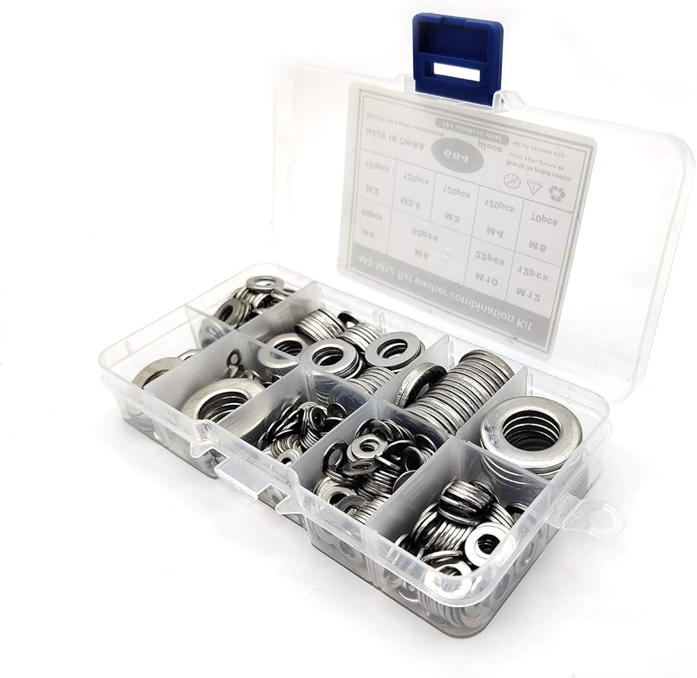 • سهلة التخزين: يتم تخزين جميع الغسالات المسطحة المصنوعة من الفولاذ المقاوم للصدأ في صندوق تخزين شفاف وقوي مع مقصورات. يتم تخزين الغسالات المعدنية بشكل منفصل، ومنظمة بشكل جيد، وسهلة الحمل والعثور عليها. لا يوجد أي ارتباك أثناء النقل وهو مناسب للاستخدام.