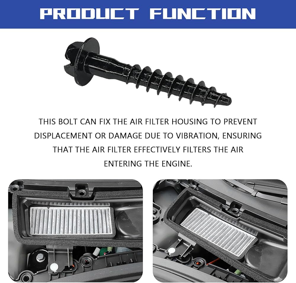 • Air Filter Fixing Protection: The air filter box screws are specially designed to fix the air filter housing, effectively preventing vibration displacement, ensuring the normal operation of the filtration system, and protecting the engine from impurities