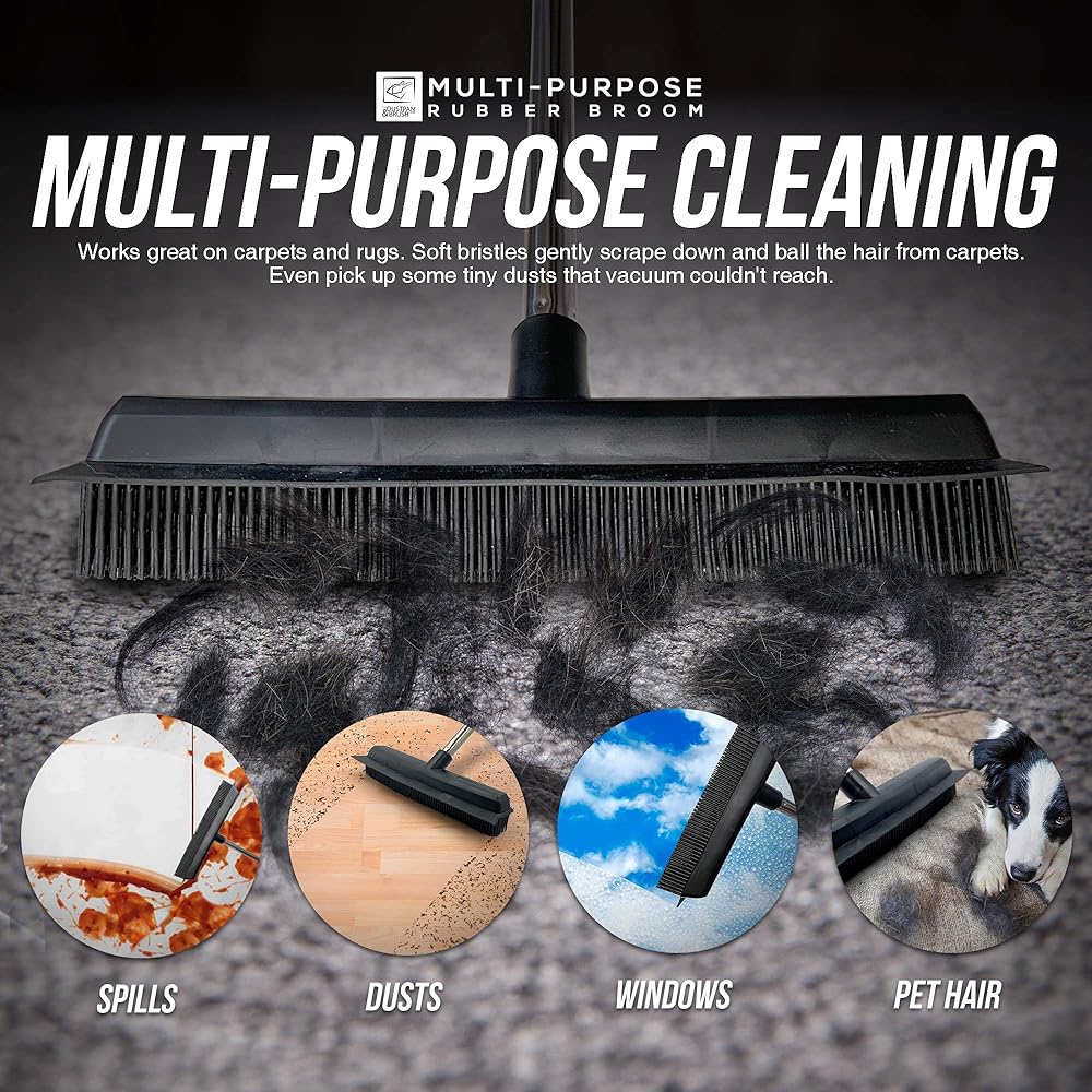 مكنسة وممسحة شعر الحيوانات الأليفة مزدوجة الأغراض - بالإضافة إلى كونها أداة فعالة لإزالة شعر السجاد، تتميز هذه المكنسة السحرية بممسحة مدمجة مثالية لإزالة الماء وتجفيف الانسكابات بسرعة. يمكن استخدامها على النوافذ والسيارات أو صنع المكنسة المطاطية المثالية للغرفة الرطبة.