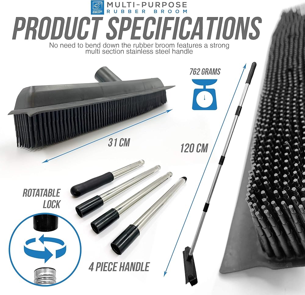 فرشاة مطاطية صحية للغاية للتنظيف - لا حاجة إلى الاستمرار في شراء مكنسة جديدة! يمكن ببساطة غسل هذه المكنسة المطاطية تحت الصنبور لتنظيف الشعيرات. إنها عملية شراء ستسعد بإجرائها.