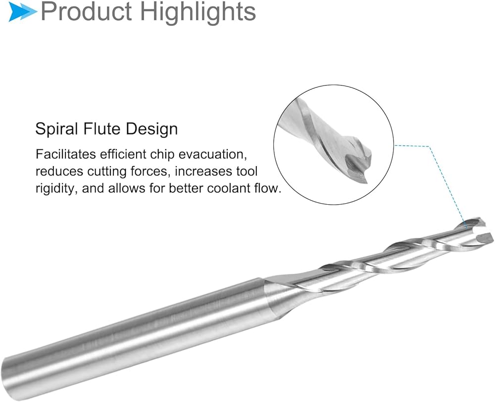 • ★Spiral Flute Design --- Facilitates efficient chip evacuation, reduces cutting forces, increases tool rigidity, and allows for better coolant flow to the cutting area. Sharp cutting edges provide smooth cuts without burrs for increased efficiency.