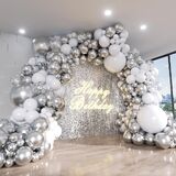 متعددة الاستخدامات لكل مناسبة: سواء كان ذلك تجمعًا لعيد الميلاد، أو حفل زفاف شتوي، أو حفلة عيد ميلاد، فإن مجموعة قوس البالونات المجمدة الخاصة بنا تتلاءم بسلاسة مع أي موضوع. قم بإنشاء أكاليل أو أقواس بالون مذهلة عن طريق مزج الألوان الأخرى ومطابقتها. دع إبداعك يتألق ويثير إعجاب ضيوفك