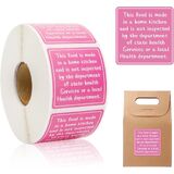 800 قطعة من ملصقات ملصقات قانون الطعام المنزلية مقاس 1.5 × 1.5 بوصة ملصقات مخبز الكوخ ذاتية اللصق مصنوعة في المنزل ملصقات مطبوعة حرارية باللون الوردي