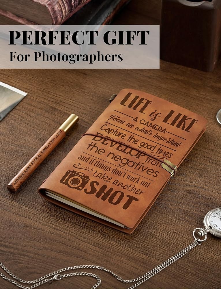 مجلة هدايا المصور من InnoBeta للنساء والرجال، هدايا التصوير الفوتوغرافي للمصورين، دفتر ملاحظات قابل لإعادة الملء منقوش بالجلد الصناعي، 7 × 5 بوصة - كاميرا - مع قلم