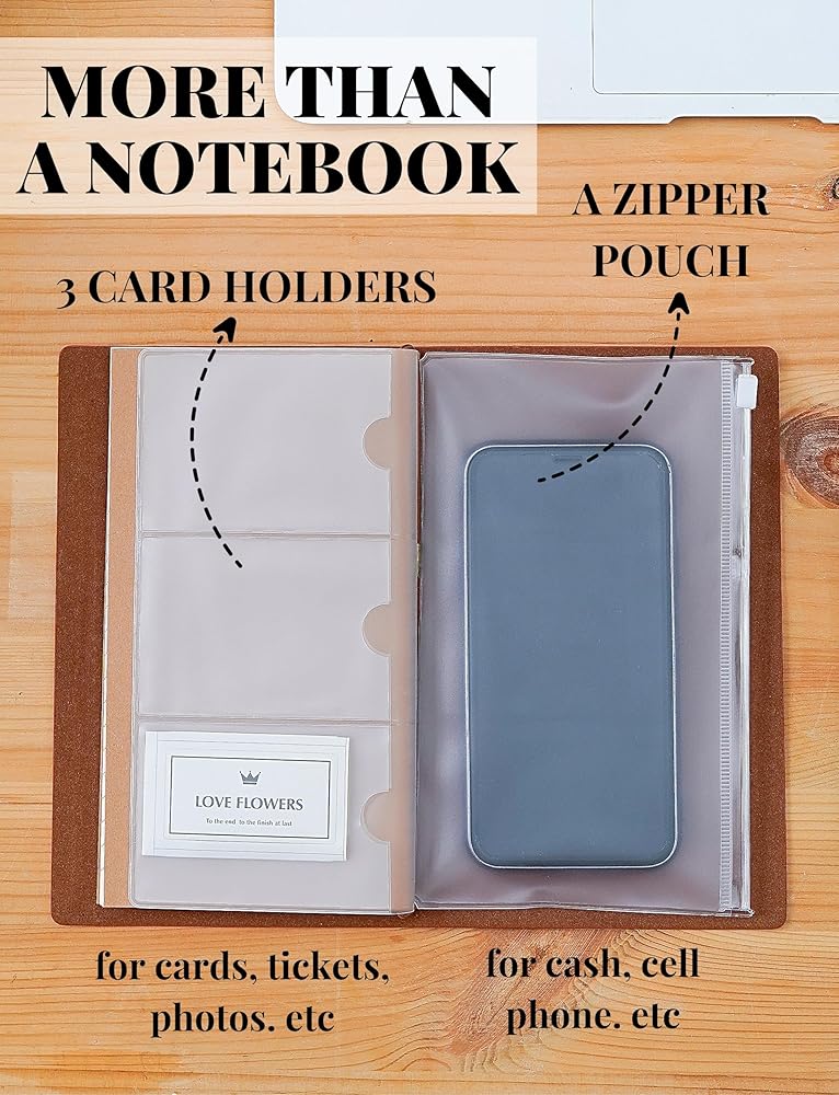 • Multifunctional - Designed for easier reading and notes taking. It would be the perfect handy choice for you during daily uses, journeys, and work. Card slot bags are also included to organize your cards, tickets, photos, etc. And also a page-size slot with zipping for storing cash, cell phone, and more.