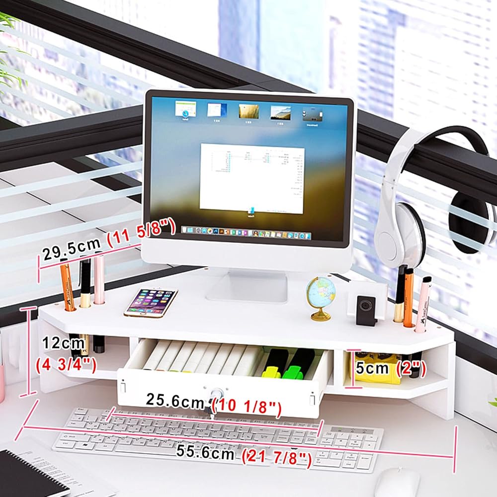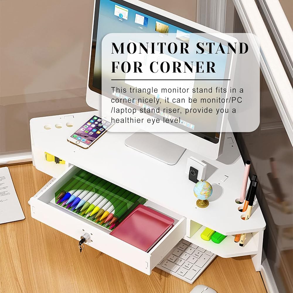 ◆ Wooden Triangular Monitor Stand for home, office, workstation and dorm. Maximize your work space, shaped to fit into the corner of a cubicle or corner workstation. Raise computer monitors to a comfortable viewing position to improving neck position for more optimal work conditions. Simple & modern design coordinate with any work or home office decor.