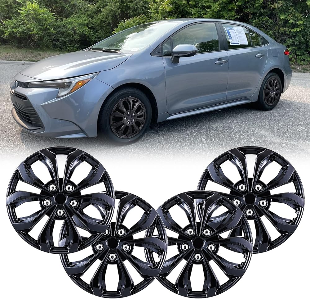 الإعداد: (مجموعة من 4) أغطية محور عالمية سوداء لامعة مقاس 17 بوصة، تصميم سهل الارتداء، أغطية عجلات بلاستيكية من البولي بروبيلين مع حلقة احتجاز قابلة للتعديل متاحة لمعظم العجلات الفولاذية مقاس 17 بوصة.