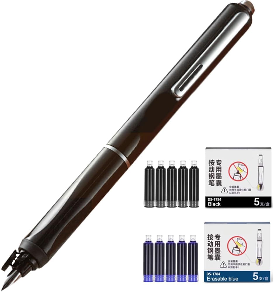 Package : 0.38mm Fine tip black ink, 1 retractable fountain pen includes 10 cartridges(5 Black 5 Blue )