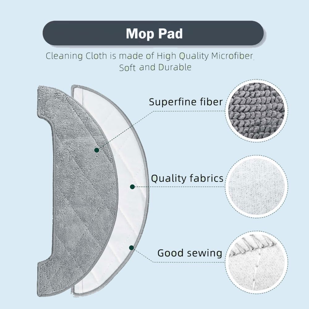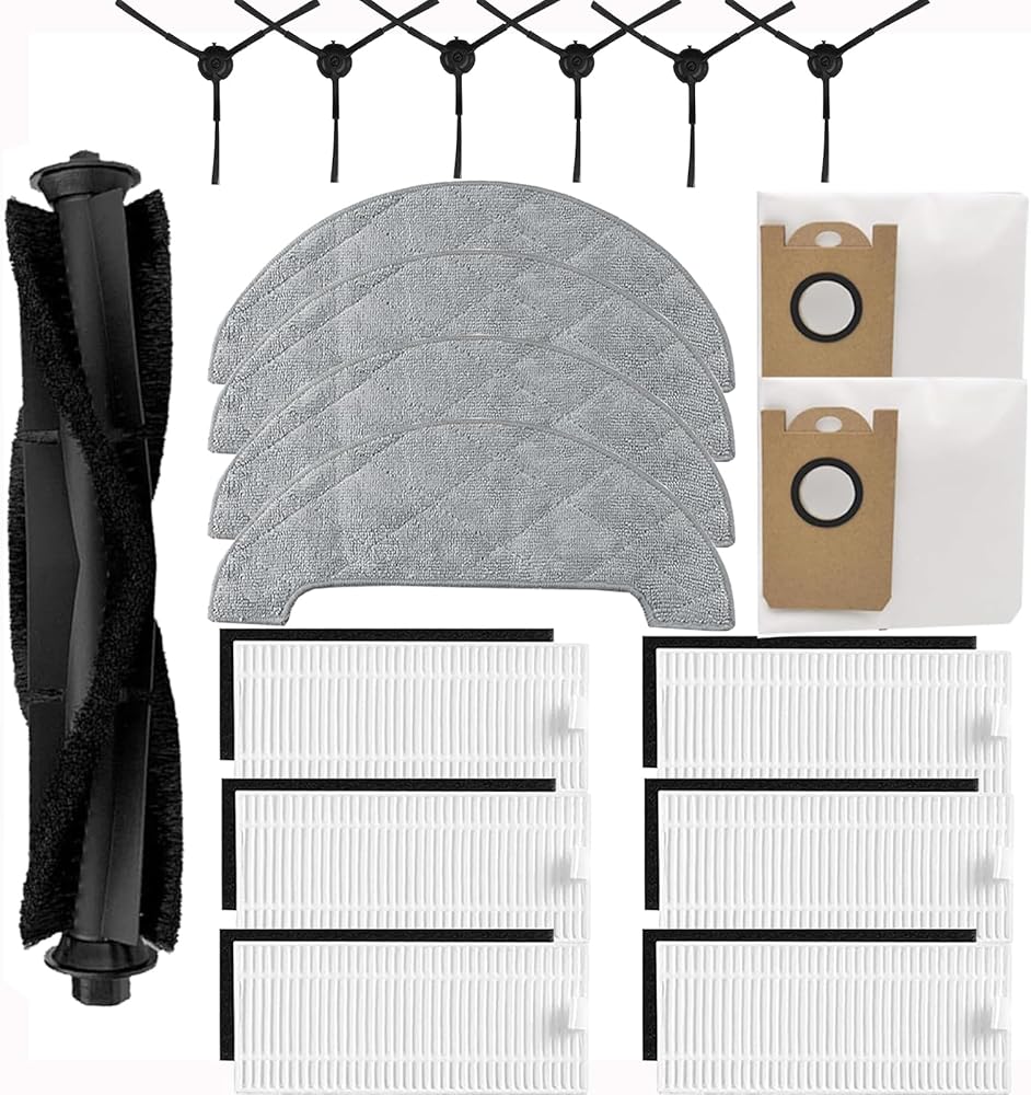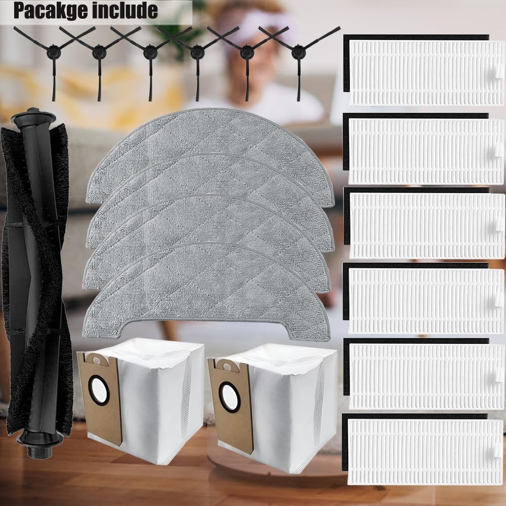 【Complete Accessories Kit】Replacement parts comes with 1× Main Brushes, 6× Side Brushes, 6× HEPA Filters, 4× Mop Pads, 2.× Dust Bags