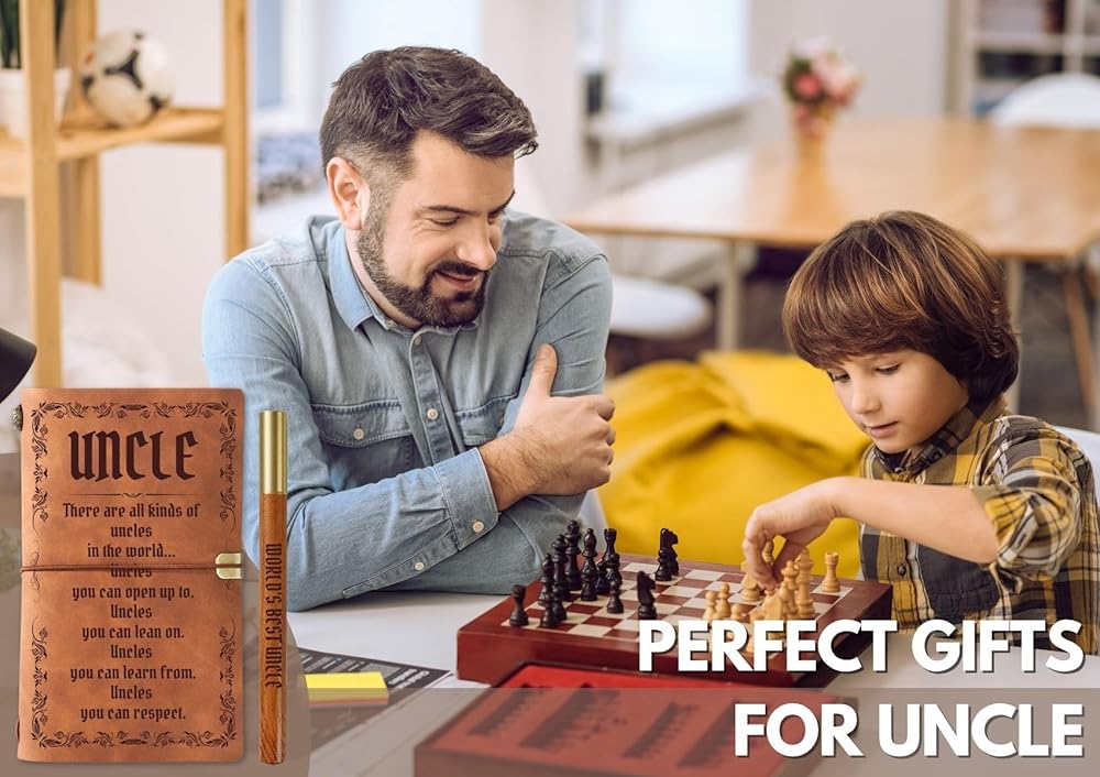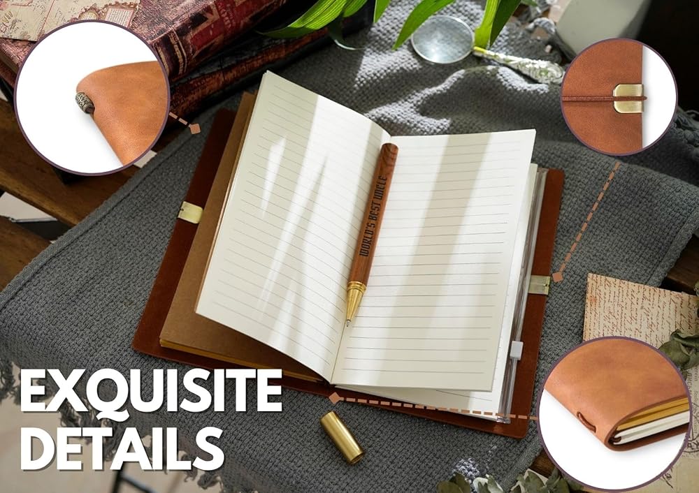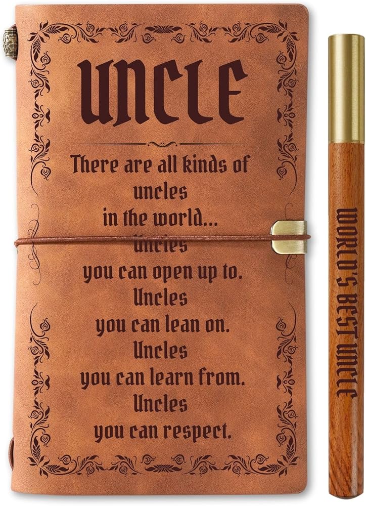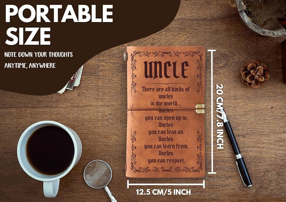 هدايا العم InnoBeta، بطاقة عيد ميلاد العم، بطاقة عيد الميلاد للعم، دفتر ملاحظات جلدي مع قلم، دفتر رسم قابل لإعادة الملء، مذكرات سفر، مخطط مبطن، 7x5 بوصة، بني