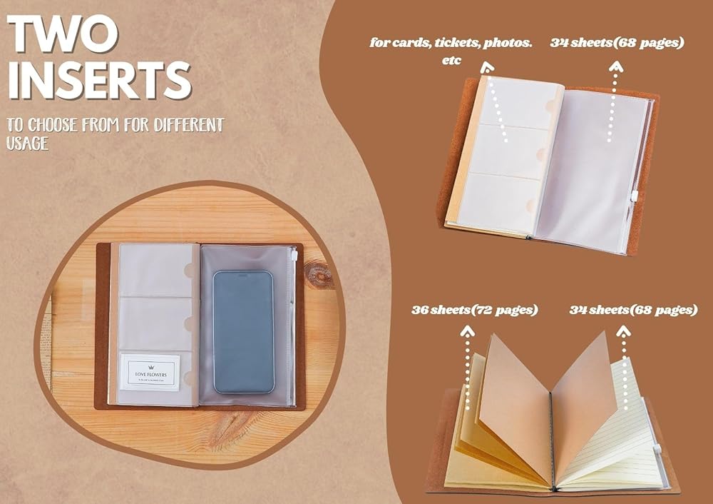 Multifunctional - Designed for easier reading and notes taking. It would be the perfect handy choice for you during daily uses, journeys, and work. Card slot bags are also included to organize your cards, tickets, photos, etc. And also a page-size slot with zipping for storing cash, cell phone, and more.