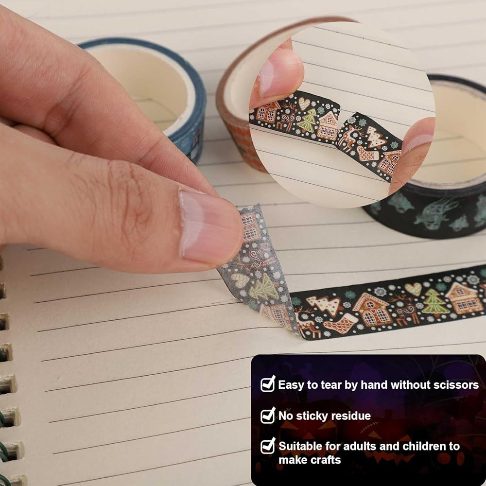 Multi-Style Design: We designed and made decorative masking tape with different patterns for Halloween, Autumn, Christmas and winter, New Year, which can satisfy your various decorative needs during these special days.