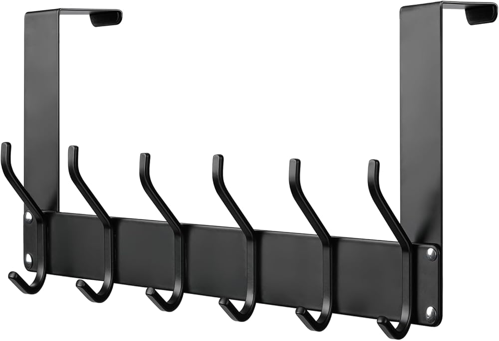 زي ان بين علاقة باب تعلق على الباب مع 12 خطاف معطف لحقيبة المناشف والقبعة والروب والملابس، منظم للحمام فوق الباب رف منشفة للمطبخ وغرفة المعيشة (اسود)
