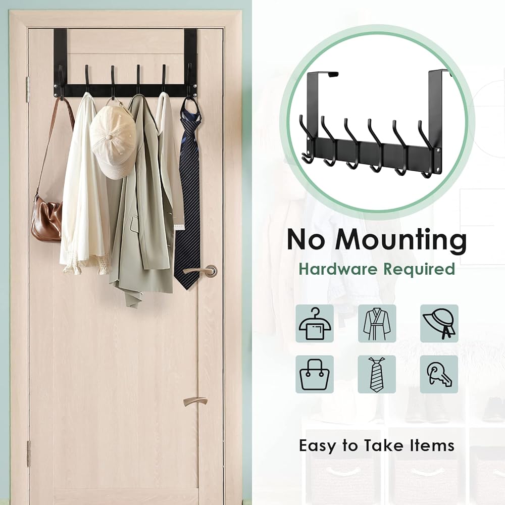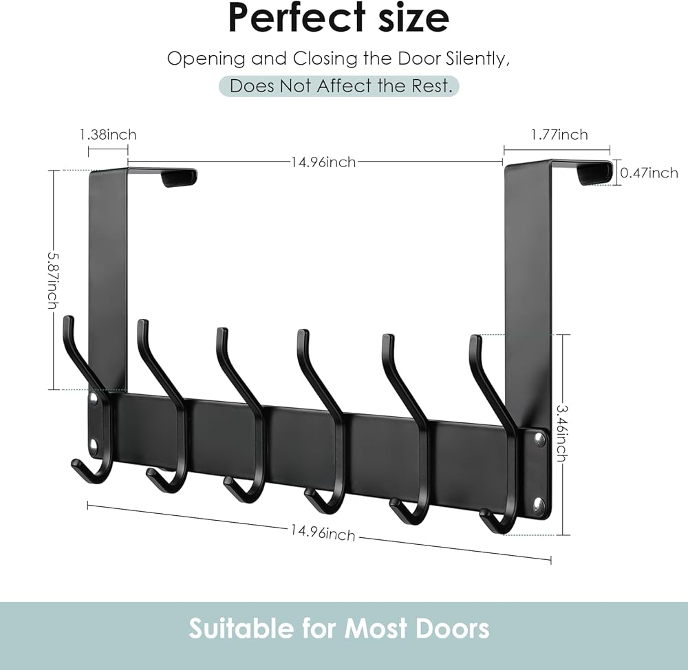 • خطاف موفر للمساحة فوق الباب: يمكن أن تساعد خطافات الباب في الاستفادة من المساحة خلف الباب، مما يضمن بقاء أغراضك آمنة وفي متناول اليد. لا تقلق بشأن مساحة التخزين المحدودة، يمكن لشماعة الباب هذه تعليق 12 قطعة في نفس الوقت للحفاظ على الغسيل منظمًا وبعيدًا عن الأرض. تلبي الاحتياجات اليومية للعائلات