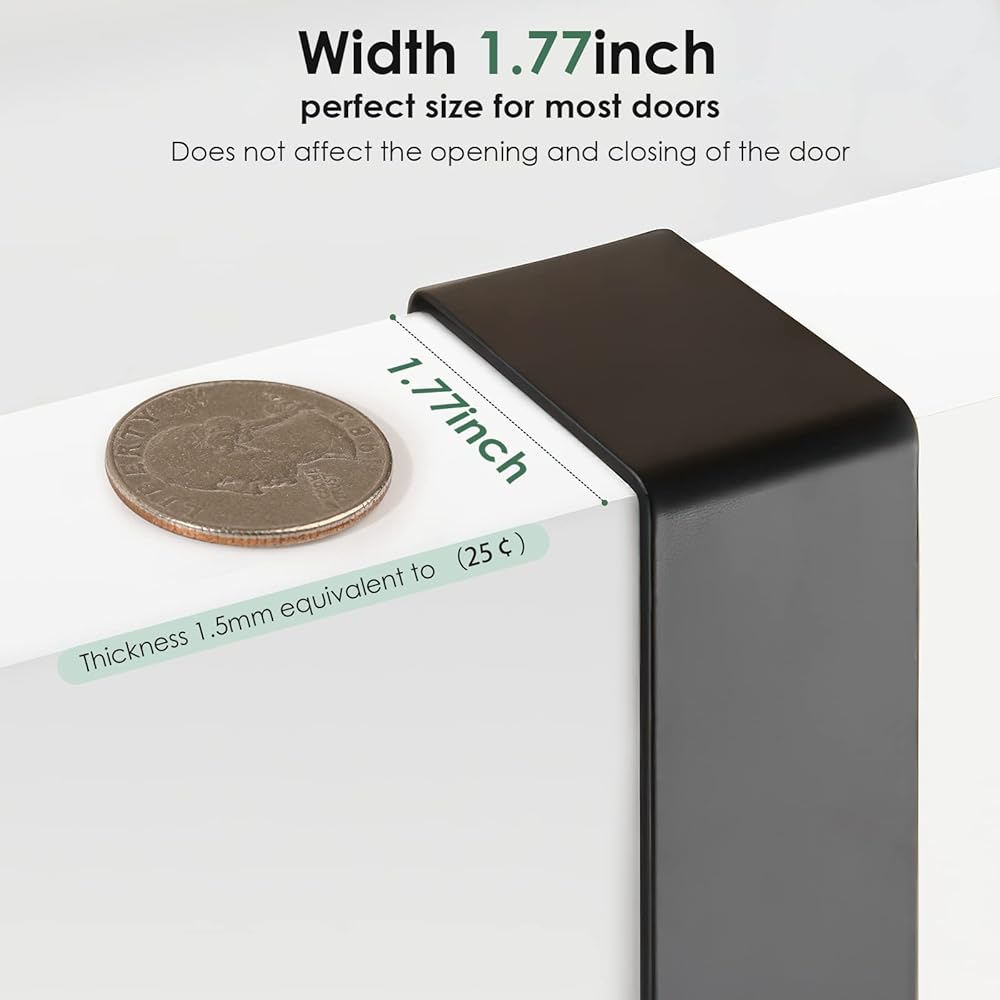 • علاقة باب من الستانلس ستيل: خطاف باب رفيع وأنيق مناسب لسمك الباب بين 1.5 انش إلى 1.77 انش، مما يغلق بابك دون أي مشكلة. 7.3 انش (ارتفاع) × 14.9 انش (عرض) × 1.77 انش (ارتفاعًا) مما يحافظ على أغراضك منظمة ويسهل الوصول إليها. مصنوعة من خليط الألومنيوم الممتاز، مقاومة للماء، مقاومة للصدأ، تحافظ على شكل جيد لفترة طويلة، متينة وقوية، تحمل ما يصل إلى 100 باوند