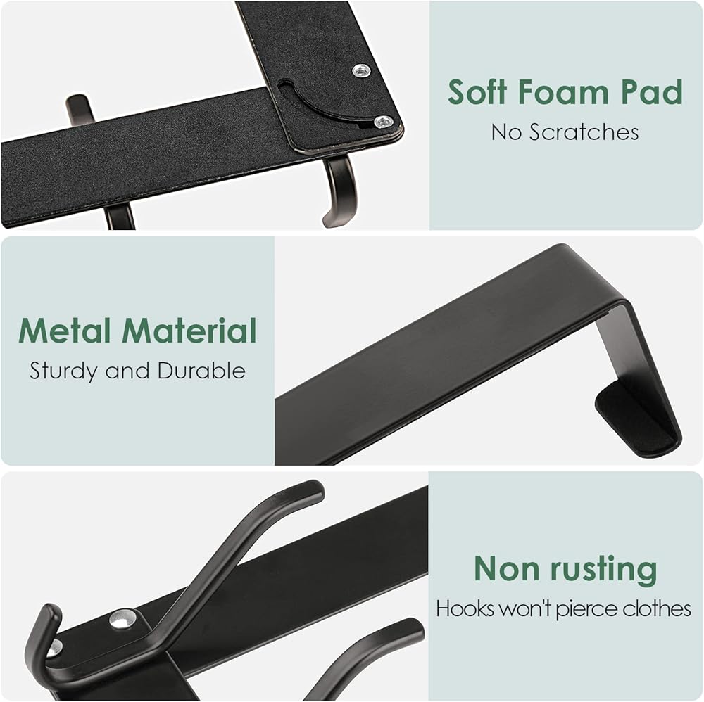 • تستخدم على نطاق واسع: شماعة فوق الباب مثالية للاستخدام في الحمامات وغرف النوم والمرائب والمهاجع والمطبخ. استفد بالكامل من بابك لتحويله إلى مساحة تخزين لتعليق المناشف والأردية والمعاطف والأوشحة والقبعات والحقائب، حل تخزين سهل وبأسعار معقولة