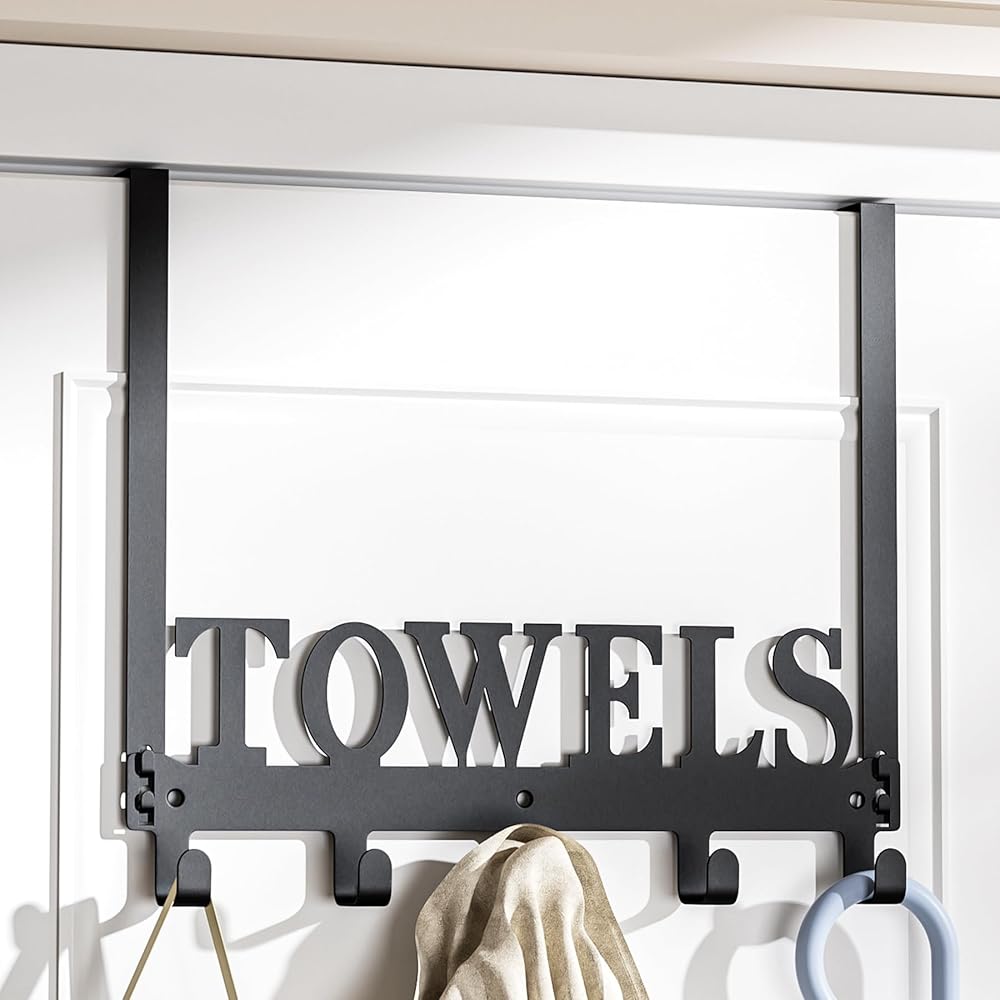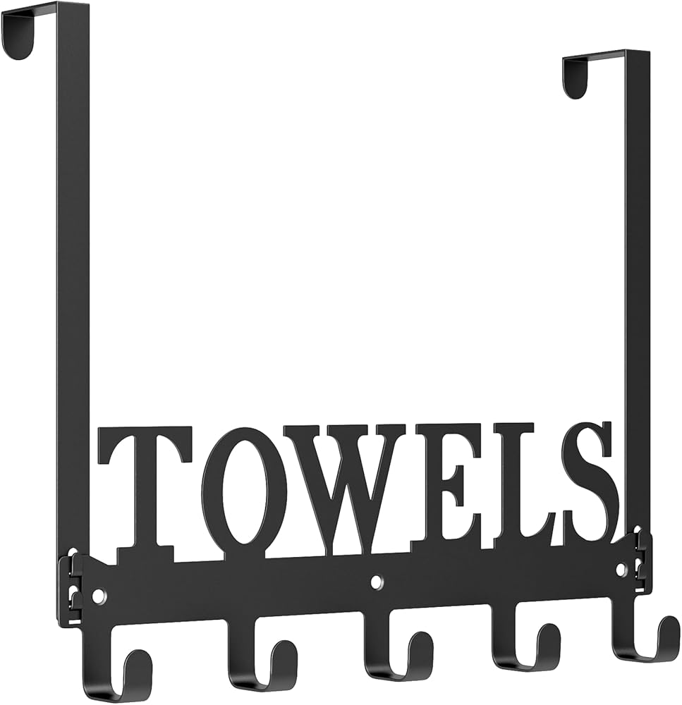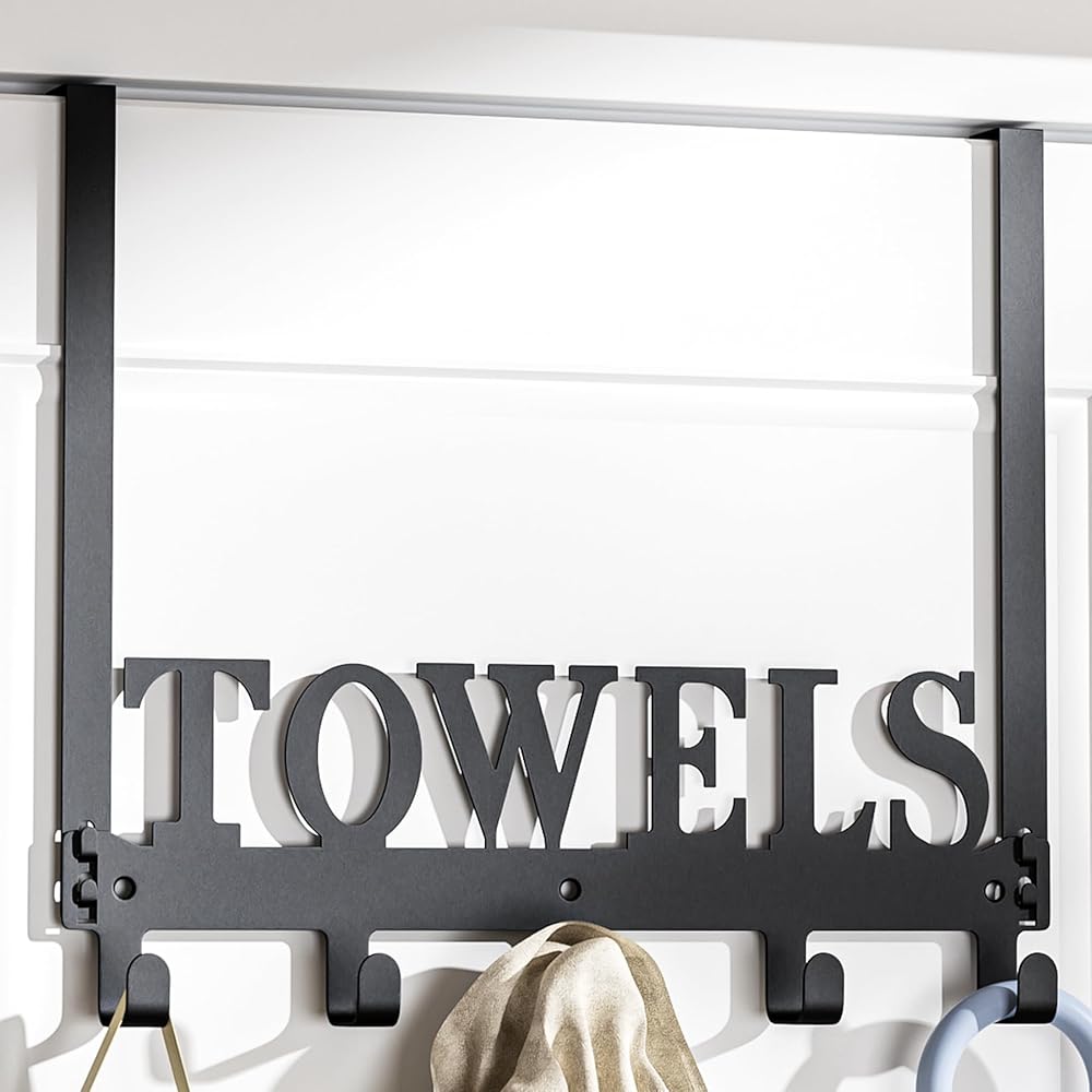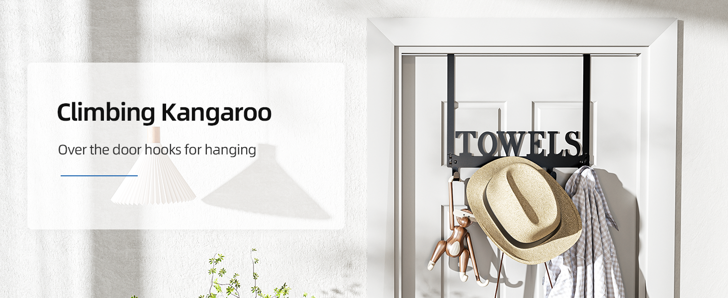 الكنغر المتسلق فوق خطافات الباب، رفوف المناشف للباب، خطافات شماعات فوق الباب مع 5 خطافات، حامل شماعة مناشف معدنية للباب وغرفة النوم والمطبخ وحمام السباحة والشاطئ، أسود