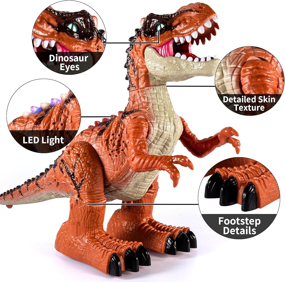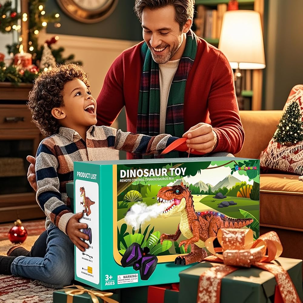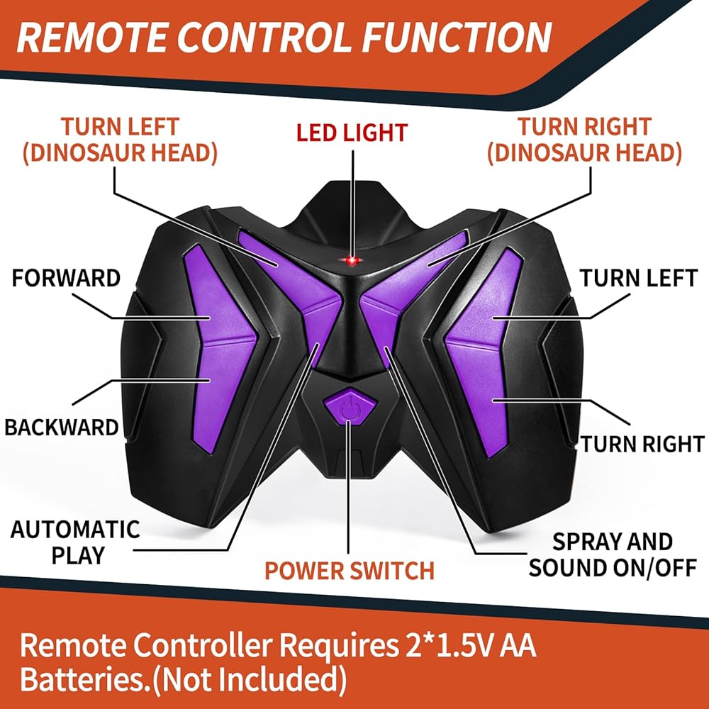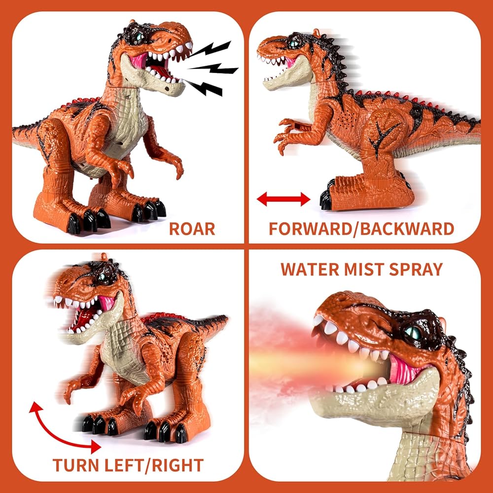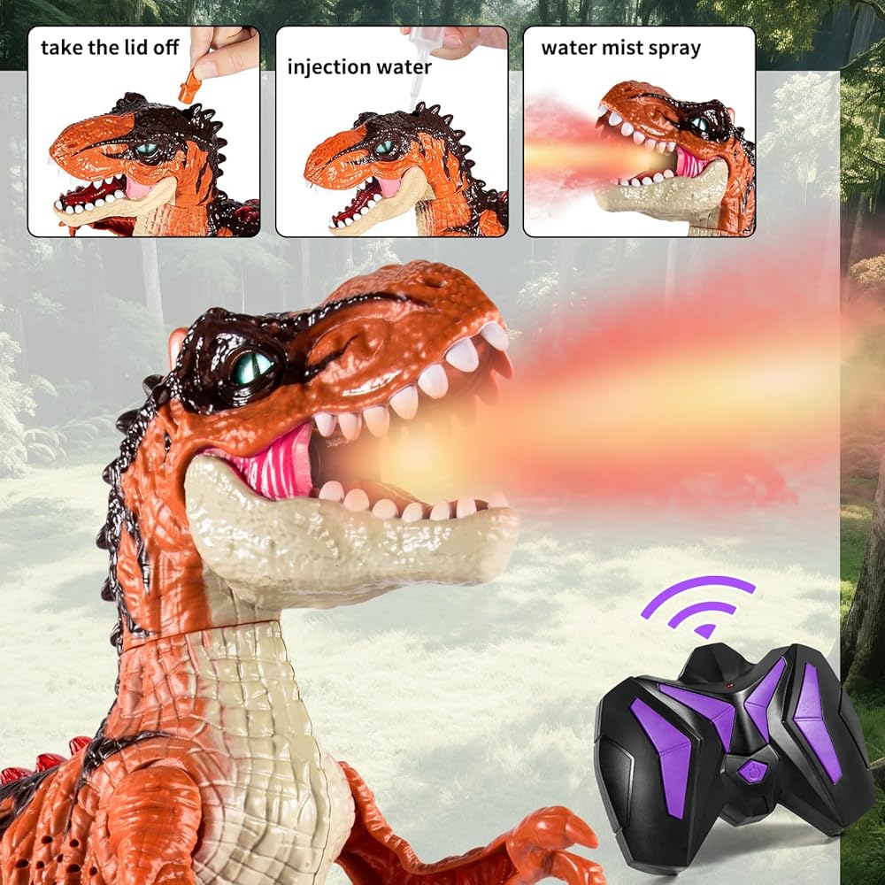 • لعبة متعددة الوظائف: مجموعة روبوت ديناصور RC هذه مجهزة بعمليات وألعاب متعددة. من خلال جهاز التحكم عن بعد، يمكن التحكم في تيرانوصور ريكس للانزلاق ذهابًا وإيابًا، والانعطاف إلى اليسار واليمين، وله وظيفة دوران مرنة 360 درجة. ليس هذا فحسب، بل توجد مصابيح LED على ظهر الديناصور وفمه. من خلال التحكم في جهاز التحكم عن بعد، يمكن لفم الديناصور أيضًا إصدار أصوات زئير ورش رذاذ الماء، وهو أمر مدهش ومثير للاهتمام للغاية. سيحب الأطفال هذه اللعبة بالتأكيد.