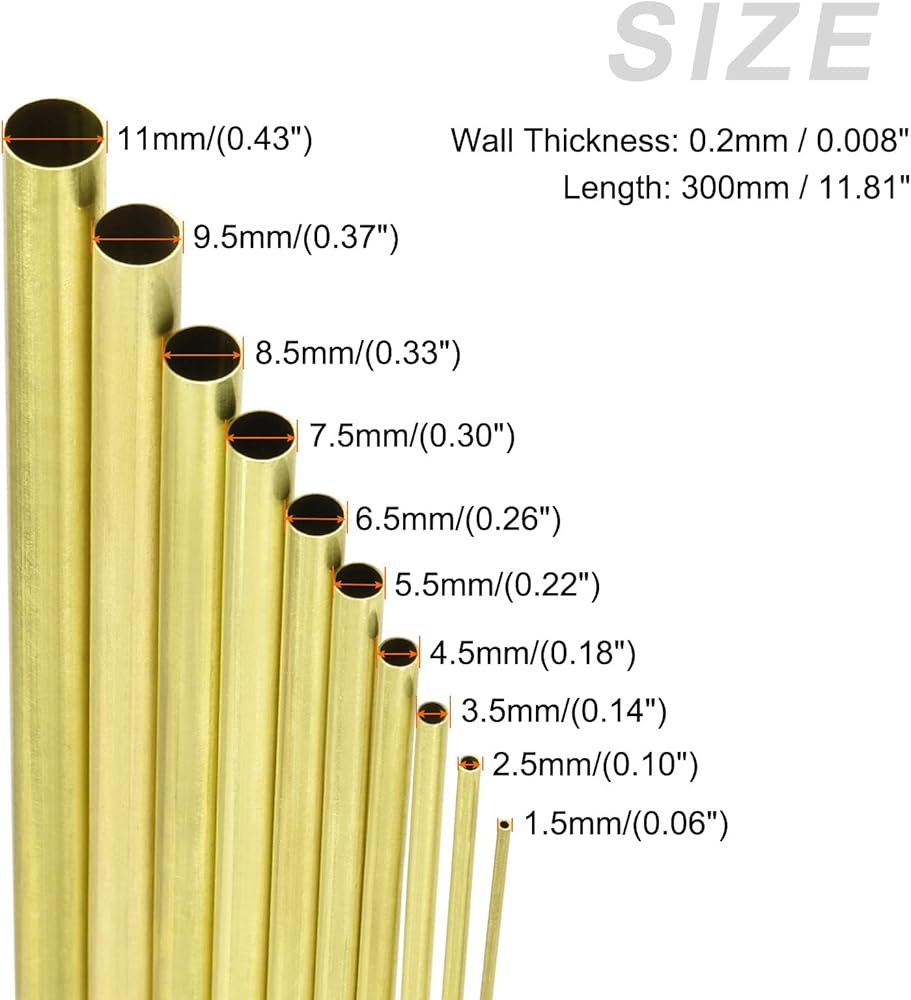 QUANTITY INCLUDED - 1 Pack x Brass Tube(1.5mm 2.5mm 3.5mm 4.5mm 5.5mm 6.5mm 7.5mm 8.5mm 9.5mm 11mm OD)